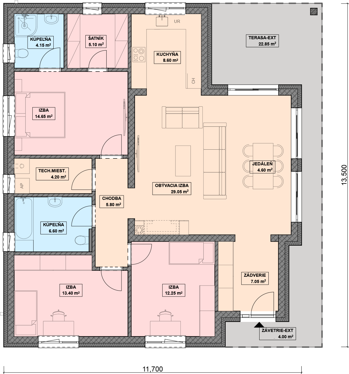 Pri navrhovaní projektov domov vždy dbáme na to, aby pôdorys a celkové dispozičné riešenie domu bol premyslený do najmenších detailov, a tým sa získa plnohodnotný a funkčný domov. Vždy sa snažíme o to, aby dom bol plne funkčný nielen v interiéri, ale mal zaujímavý aj exteriér. Vyberte si tento rodinný dom na základe jeho rozumného pôdorysu!