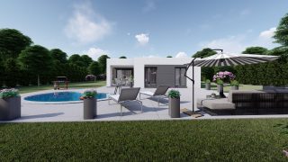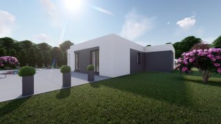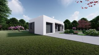 Krásny projekt bungalovu, vhodný na rovinatý alebo mierne svahovitý terén. Tento priestranný 4 izbový rodinný dom je ideálny pre väčšiu rodinu. Ku kuchyni prislúcha aj špajza, ktorá je veľmi praktickým riešením na umiestnenie veľkého množstva jedla a kuchynského náradia. Projekt domu je obohatený aj o veľké sklenené plochy v obývacej izbe, čo zaručuje krásne presvetlené priestory. Na priestrannej terase si užije oddych celá rodina. Ďalšia toaleta poteší nielen návštevy. Technická miestnosť je praktickou súčasťou domu, nemusíte sa starať o to, kam umiestniť práčku, sušicku, kotoľ, príp. tepeľné čerpadlo. Rodinné domy s plochou strechou, príp. rovnou strechou sú jedinečným a zaujímavým riešením, ako získať nevšedný a moderný vzhľad domu. Tento nádherný rodinný dom disponuje aj garážou, kde sa nájde miesto nielen pre Vaše auto, ale poskytuje odkladací priestor aj pre rôzne náradia na údržbu záhrady aj auta. V prípade tohto domu si môžete zvoliť projekt domu ako aj stavbu domu na kľúč v dvoch prevedeniach: moderný dom, prípadne pasívny dom, ktorý môže byť až 3x úspornejší, ako klasický rodinný dom. Projekt tohto nízkoenergetického domu je dostupný aj v zrkadlovom prevedení, takisto sú možné menšie aj väčšie úpravy v projekte. V prípade stavby domu si môžete zvoliť alternatívy: holodom, hrubá stavba alebo rodinný dom na kľúč.