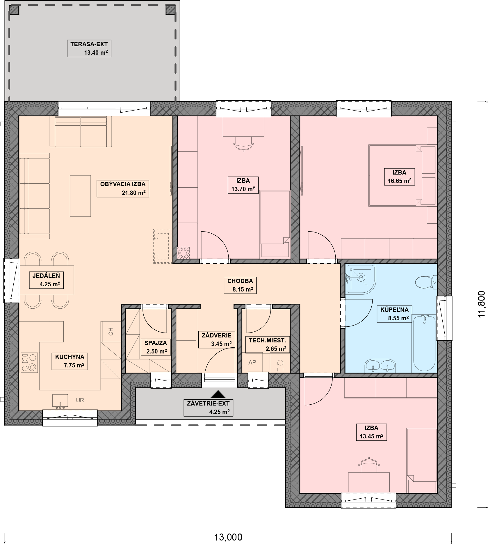 Pri navrhovaní projektov domov vždy dbáme na to, aby pôdorys a celkové dispozičné riešenie domu bol premyslený do najmenších detailov, a tým sa získa plnohodnotný a funkčný domov. Vždy sa snažíme o to, aby dom bol plne funkčný nielen v interiéri, ale mal zaujímavý aj exteriér. Vyberte si tento rodinný dom na základe jeho rozumného pôdorysu!