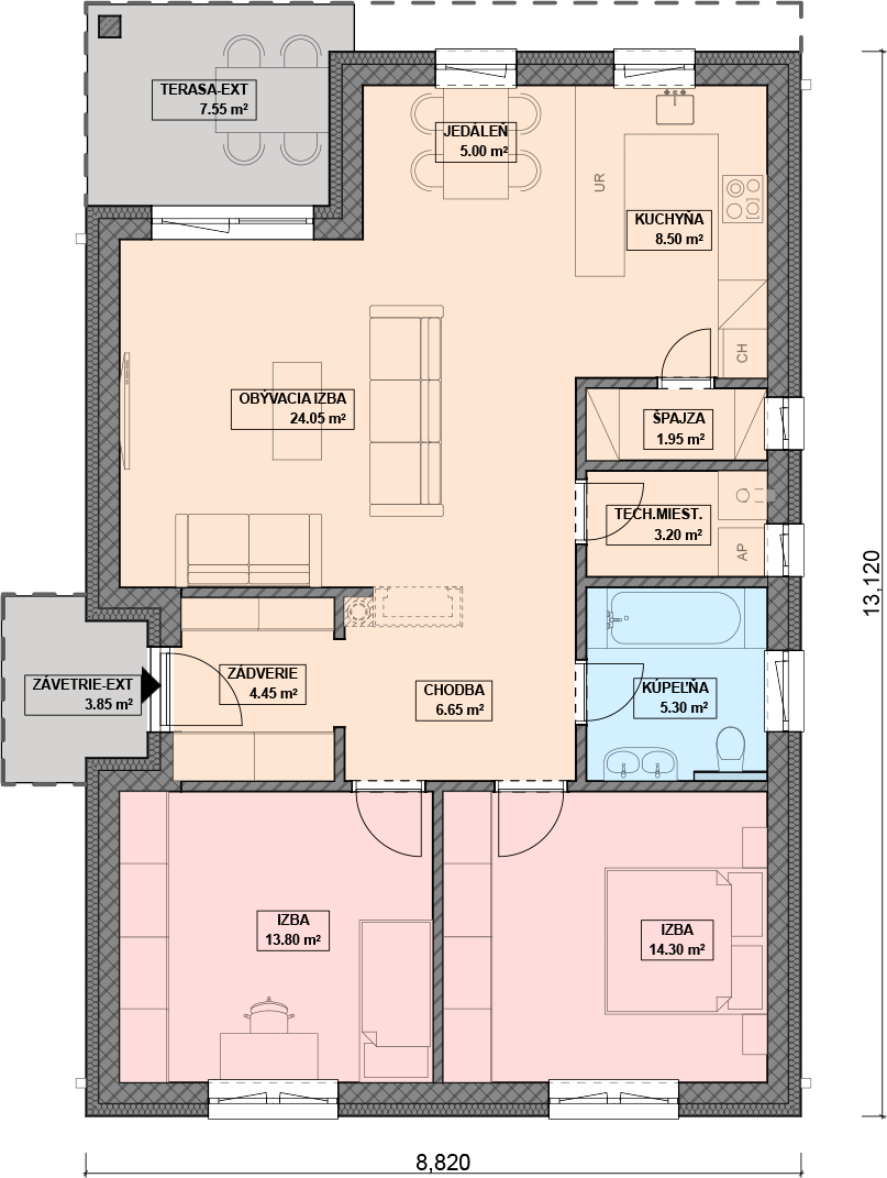 Pri navrhovaní projektov domov vždy dbáme na to, aby pôdorys a celkové dispozičné riešenie domu bol premyslený do najmenších detailov, a tým sa získa plnohodnotný a funkčný domov. Vždy sa snažíme o to, aby dom bol plne funkčný nielen v interiéri, ale mal zaujímavý aj exteriér. Vyberte si tento rodinný dom na základe jeho rozumného pôdorysu!