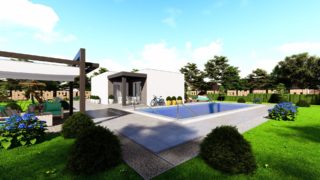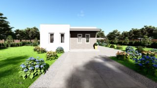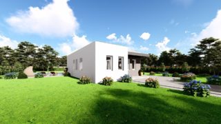 Hľadáte ten „ideálny“ bungalov? My máme riešenie v podobe tohto nádherného jednopodlažného domu. Trojizbový murovaný rodinný dom vyhovuje požiadavkam menšej rodiny. Projekt domu je obohatený aj o veľké sklenené plochy v obývacej izbe, čo zaručuje krásne presvetlené priestory. Dom disponuje šikmou strechou, ktorá vytvára klasický a romantický vzhľad. Výhodou šikmých striech je variabilita a možnosť prispôsobenia ceľkového vzhľadu domu práve pomocou strechy. Pôdorys rodinného domu má tvar písmena ''L'', čo zaručuje pocit súkromia zo strany susedov. Pri stavbe domu treba zohľadniť aj dostatočné krytie terasy. Dom poskytuje vhodné riešenie aj v prípade, keď na stavbu domu je k dispozícii iba úzky pozemok. Tento malý dom je vhodný na menšie stavebné parcely vďaka svojim kompaktným rozmerom. Samostatný šatník je snom azda každej ženy, kde sa pohodlne zmestí všetok oblečenie. Projekt tohto nízkoenergetického domu je dostupný aj v zrkadlovom prevedení, takisto sú možné menšie aj väčšie úpravy v projekte. V prípade stavby domu si môžete zvoliť alternatívy: holodom, hrubá stavba alebo rodinný dom na kľúč. V prípade tohto domu si môžete zvoliť projekt domu ako aj stavbu domu na kľúč v dvoch prevedeniach: moderný dom, prípadne pasívny dom, ktorý môže byť až 3x úspornejší, ako klasický rodinný dom.