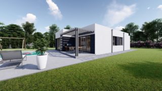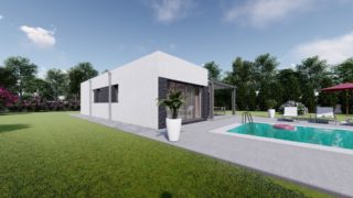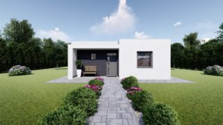Hľadáte ten „ideálny“ bungalov? My máme riešenie v podobe tohto nádherného jednopodlažného domu. Trojizbový murovaný rodinný dom vyhovuje požiadavkam menšej rodiny. Projekt domu je obohatený aj o veľké sklenené plochy v obývacej izbe, čo zaručuje krásne presvetlené priestory. Rodinné domy s plochou strechou, príp. rovnou strechou sú jedinečným a zaujímavým riešením, ako získať nevšedný a moderný vzhľad domu. Dom poskytuje vhodné riešenie aj v prípade, keď na stavbu domu je k dispozícii iba úzky pozemok. Tento malý dom je vhodný na menšie stavebné parcely vďaka svojim kompaktným rozmerom. Ku kuchyni prislúcha aj špajza, ktorá je veľmi praktickým riešením na umiestnenie veľkého množstva jedla a kuchynského náradia. Ďalšia toaleta poteší nielen návštevy. V prípade tohto domu si môžete zvoliť projekt domu ako aj stavbu domu na kľúč v dvoch prevedeniach: moderný dom, prípadne pasívny dom, ktorý môže byť až 3x úspornejší, ako klasický rodinný dom. Projekt tohto nízkoenergetického domu je dostupný aj v zrkadlovom prevedení, takisto sú možné menšie aj väčšie úpravy v projekte. V prípade stavby domu si môžete zvoliť alternatívy: holodom, hrubá stavba alebo rodinný dom na kľúč.