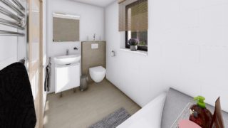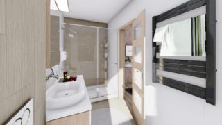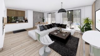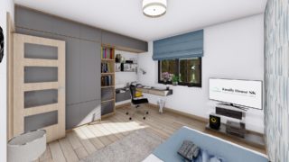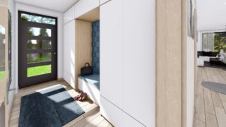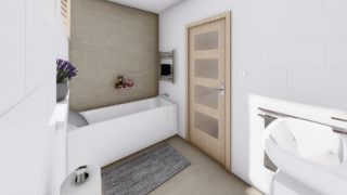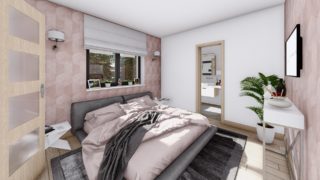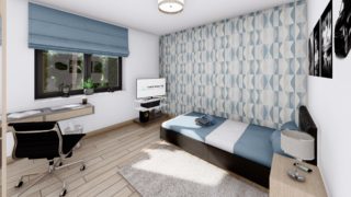 Krásny projekt bungalovu, vhodný na rovinatý alebo mierne svahovitý terén. Tento skromný 3 izbový dom je ideálny pre troj- až štvorčlennú rodinu. Rodinné domy s plochou strechou, príp. rovnou strechou sú jedinečným a zaujímavým riešením, ako získať nevšedný a moderný vzhľad domu. Projekt domu je dokonca vhodný aj na úzky pozemok. Tento projekt malého domu má veľké výhody oproti veľkým stavbám, nakoľko predstavuje malé náklady na bývanie vďaka nízkym prevádzkovým nákladom. Samostatný šatník je snom azda každej ženy, kde sa pohodlne zmestí všetok oblečenie. V prípade tohto domu si môžete zvoliť projekt domu ako aj stavbu domu na kľúč v dvoch prevedeniach: moderný dom, prípadne pasívny dom, ktorý môže byť až 3x úspornejší, ako klasický rodinný dom. V dome nájdete aj kráľovstvo rodičov, kde spálňa rodičov je vybavená vlastným šatníkom a kúpeľňou. Projekt domu je obohatený aj o veľké sklenené plochy v obývacej izbe, čo zaručuje krásne presvetlené priestory. Na priestrannej terase si užije oddych celá rodina. Ďalšia kúpeľňa okrem tej hlavnej poteší každého člena rodiny. Technická miestnosť je praktickou súčasťou domu, nemusíte sa starať o to, kam umiestniť práčku, sušicku, kotoľ, príp. tepeľné čerpadlo. Projekt tohto nízkoenergetického domu je dostupný aj v zrkadlovom prevedení, takisto sú možné menšie aj väčšie úpravy v projekte. V prípade stavby domu si môžete zvoliť alternatívy: holodom, hrubá stavba alebo rodinný dom na kľúč.
