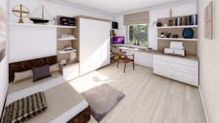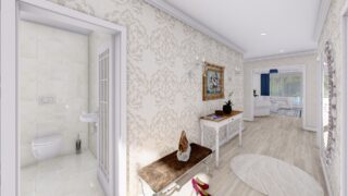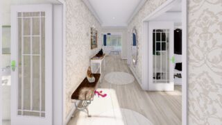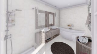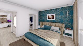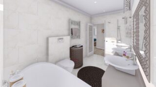 Krásny projekt bungalovu, vhodný na rovinatý alebo mierne svahovitý terén. Tento priestranný 4 izbový rodinný dom je ideálny pre väčšiu rodinu. Projekt domu je obohatený aj o veľké sklenené plochy v obývacej izbe, čo zaručuje krásne presvetlené priestory. Na priestrannej terase si užije oddych celá rodina. Dom disponuje šikmou strechou, ktorá vytvára klasický a romantický vzhľad. Výhodou šikmých striech je variabilita a možnosť prispôsobenia ceľkového vzhľadu domu práve pomocou strechy. Tento projekt veľkého rodinného domu spája v sebe veľa výhod: má vzdušnú a priestrannú dennú časť, no všetci členovia majú aj svoj vlastný priestor pre oddych. Samostatný šatník je snom azda každej ženy, kde sa pohodlne zmestí všetok oblečenie. Ku kuchyni prislúcha aj špajza, ktorá je veľmi praktickým riešením na umiestnenie veľkého množstva jedla a kuchynského náradia. Ďalšia toaleta poteší nielen návštevy. Technická miestnosť je praktickou súčasťou domu, nemusíte sa starať o to, kam umiestniť práčku, sušicku, kotoľ, príp. tepeľné čerpadlo. Projekt domu ako aj stavba domu na kľúč je dostupná v dvoch prevedeniach: môžete si zvoliť alternatívu, či Vám vyhovuje viac klasický murovaný alebo skôr montovaný rodinný dom. Projekt tohto nízkoenergetického domu je dostupný aj v zrkadlovom prevedení, takisto sú možné menšie aj väčšie úpravy v projekte. V prípade stavby domu si môžete zvoliť alternatívy: holodom, hrubá stavba alebo rodinný dom na kľúč.