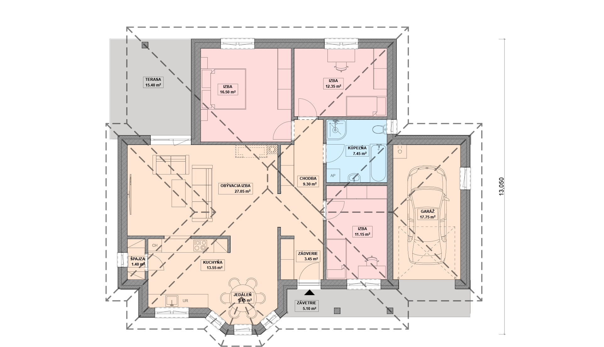 Pri navrhovaní projektov domov vždy dbáme na to, aby pôdorys a celkové dispozičné riešenie domu bol premyslený do najmenších detailov, a tým sa získa plnohodnotný a funkčný domov. Vždy sa snažíme o to, aby dom bol plne funkčný nielen v interiéri, ale mal zaujímavý aj exteriér. Vyberte si tento rodinný dom na základe jeho rozumného pôdorysu!