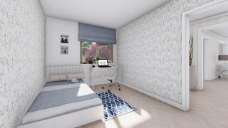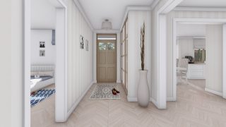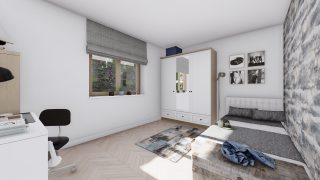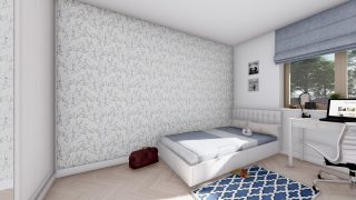 Krásny projekt bungalovu, vhodný na rovinatý alebo mierne svahovitý terén. Tento priestranný 4 izbový rodinný dom je ideálny pre väčšiu rodinu. Na priestrannej terase si užije oddych celá rodina. Dom disponuje šikmou strechou, ktorá vytvára klasický a romantický vzhľad. Výhodou šikmých striech je variabilita a možnosť prispôsobenia ceľkového vzhľadu domu práve pomocou strechy. Pôdorys rodinného domu má tvar písmena ''L'', čo zaručuje pocit súkromia zo strany susedov. Pri stavbe domu treba zohľadniť aj dostatočné krytie terasy. Ku kuchyni prislúcha aj špajza, ktorá je veľmi praktickým riešením na umiestnenie veľkého množstva jedla a kuchynského náradia. Tento nádherný rodinný dom disponuje aj garážou, kde sa nájde miesto nielen pre Vaše auto, ale poskytuje odkladací priestor aj pre rôzne náradia na údržbu záhrady aj auta. Projekt domu ako aj stavba domu na kľúč je dostupná v dvoch prevedeniach: môžete si zvoliť alternatívu, či Vám vyhovuje viac klasický murovaný alebo skôr montovaný rodinný dom. Projekt tohto nízkoenergetického domu je dostupný aj v zrkadlovom prevedení, takisto sú možné menšie aj väčšie úpravy v projekte. V prípade stavby domu si môžete zvoliť alternatívy: holodom, hrubá stavba alebo rodinný dom na kľúč.