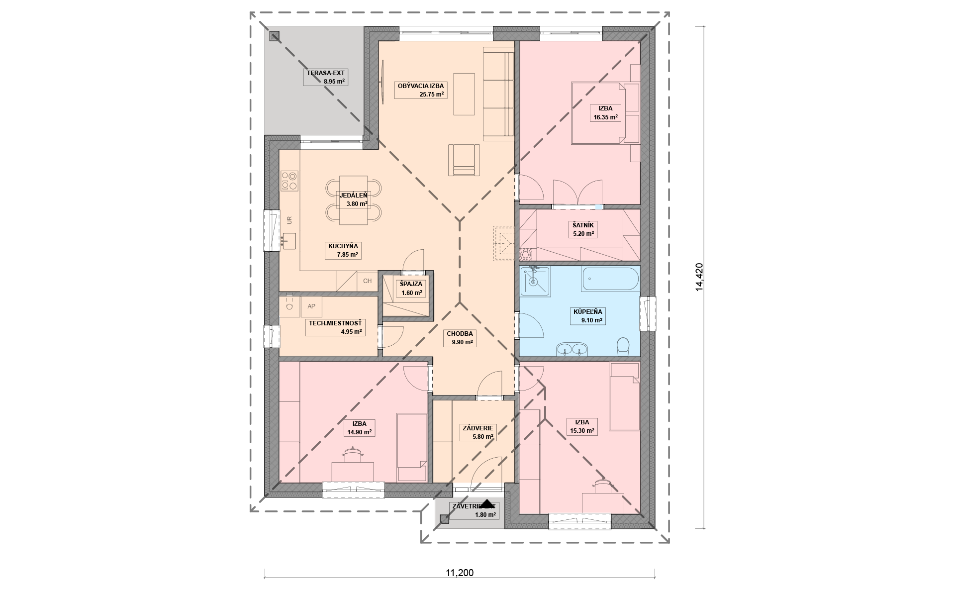 Pri navrhovaní projektov domov vždy dbáme na to, aby pôdorys a celkové dispozičné riešenie domu bol premyslený do najmenších detailov, a tým sa získa plnohodnotný a funkčný domov. Vždy sa snažíme o to, aby dom bol plne funkčný nielen v interiéri, ale mal zaujímavý aj exteriér. Vyberte si tento rodinný dom na základe jeho rozumného pôdorysu!