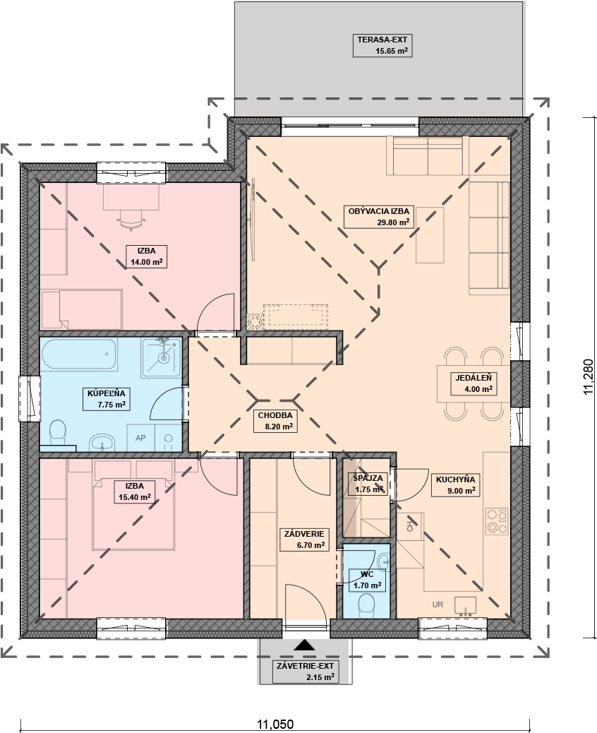 Pri navrhovaní projektov domov vždy dbáme na to, aby pôdorys a celkové dispozičné riešenie domu bol premyslený do najmenších detailov, a tým sa získa plnohodnotný a funkčný domov. Vždy sa snažíme o to, aby dom bol plne funkčný nielen v interiéri, ale mal zaujímavý aj exteriér. Vyberte si tento rodinný dom na základe jeho rozumného pôdorysu!