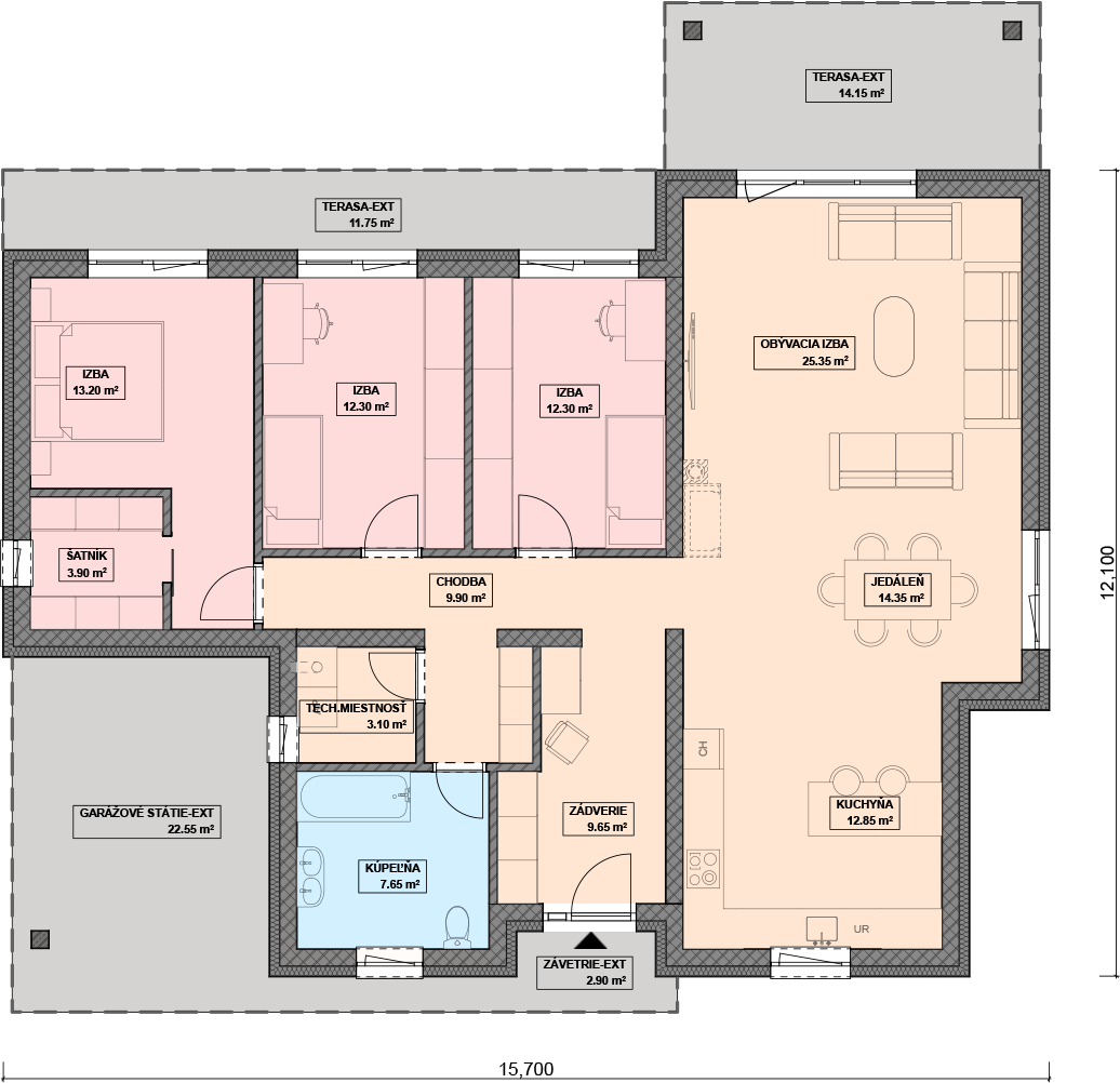 Pri navrhovaní projektov domov vždy dbáme na to, aby pôdorys a celkové dispozičné riešenie domu bol premyslený do najmenších detailov, a tým sa získa plnohodnotný a funkčný domov. Vždy sa snažíme o to, aby dom bol plne funkčný nielen v interiéri, ale mal zaujímavý aj exteriér. Vyberte si tento rodinný dom na základe jeho rozumného pôdorysu!
