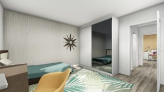 Krásny projekt bungalovu, vhodný na rovinatý alebo mierne svahovitý terén. Tento priestranný 4 izbový rodinný dom je ideálny pre väčšiu rodinu. V dome nájdete aj kráľovstvo rodičov, kde spálňa rodičov je vybavená vlastným šatníkom a kúpeľňou. Rodinné domy s plochou strechou, príp. rovnou strechou sú jedinečným a zaujímavým riešením, ako získať nevšedný a moderný vzhľad domu. Pôdorys rodinného domu má tvar písmena ''L'', čo zaručuje pocit súkromia zo strany susedov. Pri stavbe domu treba zohľadniť aj dostatočné krytie terasy. Ďalšia kúpeľňa okrem tej hlavnej poteší každého člena rodiny. Samostatný šatník je snom azda každej ženy, kde sa pohodlne zmestí všetok oblečenie. Projekt domu je obohatený aj o veľké sklenené plochy v obývacej izbe, čo zaručuje krásne presvetlené priestory. Na priestrannej terase si užije oddych celá rodina. Projekt tohto nízkoenergetického domu je dostupný aj v zrkadlovom prevedení, takisto sú možné menšie aj väčšie úpravy v projekte. V prípade stavby domu si môžete zvoliť alternatívy: holodom, hrubá stavba alebo rodinný dom na kľúč.