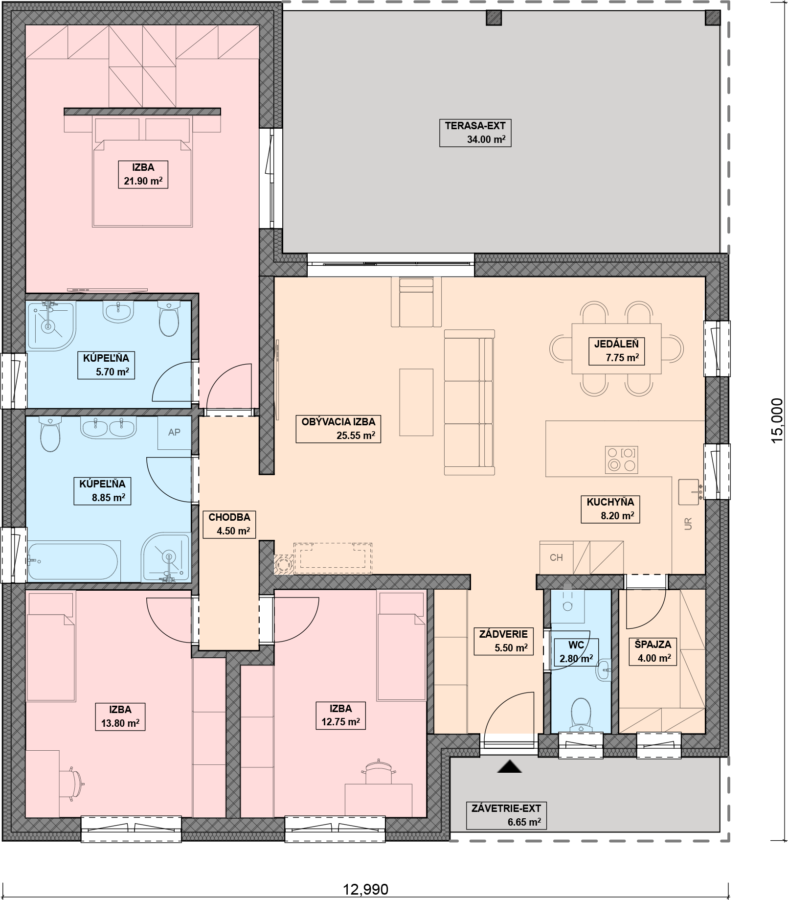 Pri navrhovaní projektov domov vždy dbáme na to, aby pôdorys a celkové dispozičné riešenie domu bol premyslený do najmenších detailov, a tým sa získa plnohodnotný a funkčný domov. Vždy sa snažíme o to, aby dom bol plne funkčný nielen v interiéri, ale mal zaujímavý aj exteriér. Vyberte si tento rodinný dom na základe jeho rozumného pôdorysu!