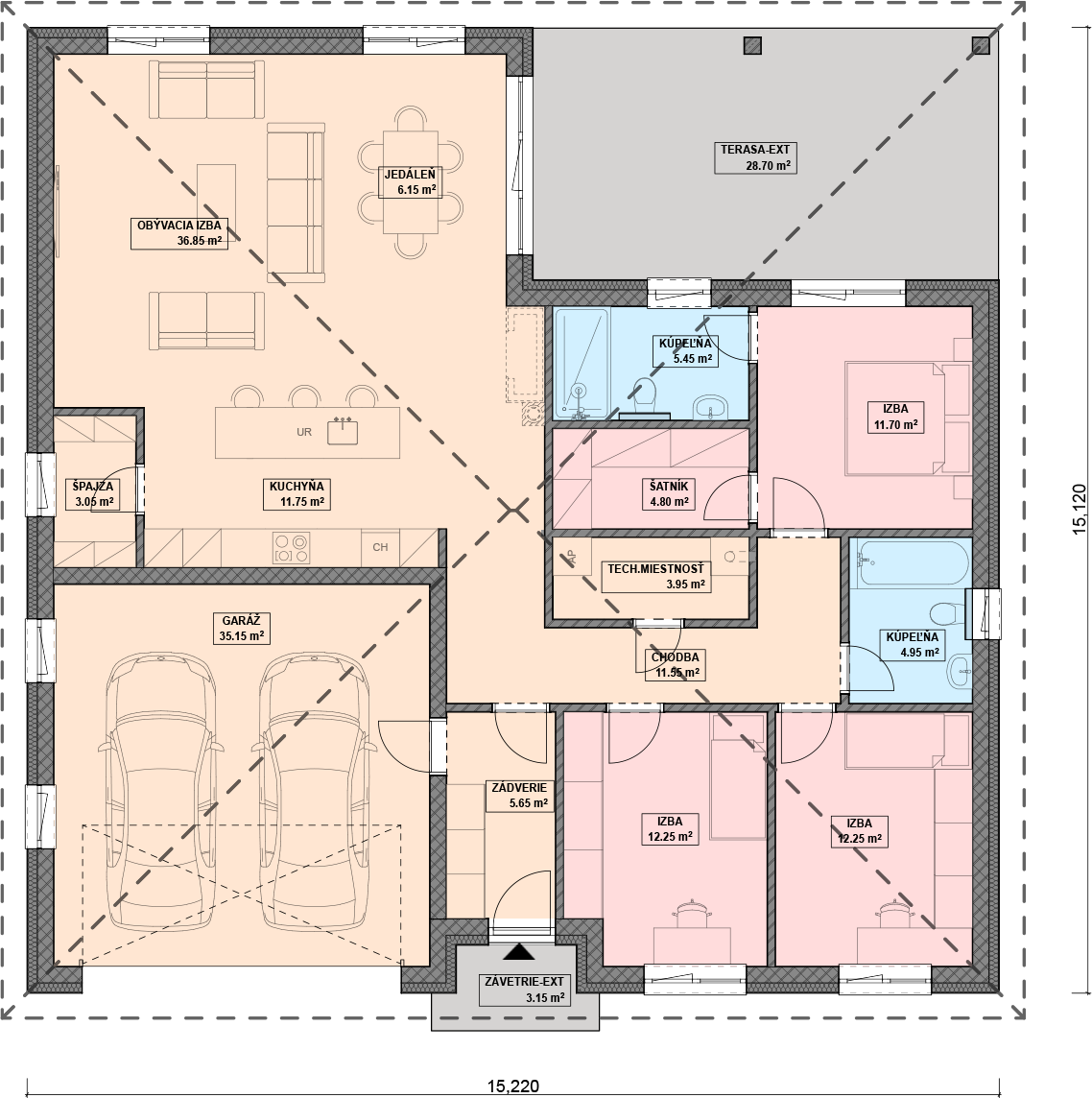 Pri navrhovaní projektov domov vždy dbáme na to, aby pôdorys a celkové dispozičné riešenie domu bol premyslený do najmenších detailov, a tým sa získa plnohodnotný a funkčný domov. Vždy sa snažíme o to, aby dom bol plne funkčný nielen v interiéri, ale mal zaujímavý aj exteriér. Vyberte si tento rodinný dom na základe jeho rozumného pôdorysu!