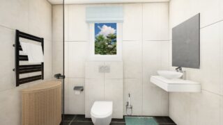 Krásny projekt bungalovu, vhodný na rovinatý alebo mierne svahovitý terén. Tento priestranný 4 izbový rodinný dom je ideálny pre väčšiu rodinu. Rodinný dom je vybavený dvojgarážou, čím sa poskytne miesto nielen pre Vaše autá, ale môže slúžiť aj ako odkladací priestor pre rôzne náradia. Pôdorys rodinného domu má tvar písmena ''L'', čo zaručuje pocit súkromia zo strany susedov. Pri stavbe domu treba zohľadniť aj dostatočné krytie terasy. Ďalšia kúpeľňa okrem tej hlavnej poteší každého člena rodiny. Samostatný šatník je snom azda každej ženy, kde sa pohodlne zmestí všetok oblečenie. Ku kuchyni prislúcha aj špajza, ktorá je veľmi praktickým riešením na umiestnenie veľkého množstva jedla a kuchynského náradia. Technická miestnosť je praktickou súčasťou domu, nemusíte sa starať o to, kam umiestniť práčku, sušicku, kotoľ, príp. tepeľné čerpadlo. Projekt domu ako aj stavba domu na kľúč je dostupná v dvoch prevedeniach: môžete si zvoliť alternatívu, či Vám vyhovuje viac klasický murovaný alebo skôr montovaný rodinný dom. Projekt tohto nízkoenergetického domu je dostupný aj v zrkadlovom prevedení, takisto sú možné menšie aj väčšie úpravy v projekte. V prípade stavby domu si môžete zvoliť alternatívy: holodom, hrubá stavba alebo rodinný dom na kľúč.