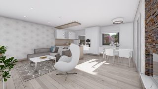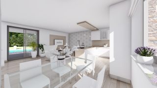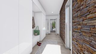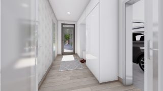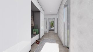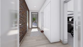 Hľadáte ten „ideálny“ bungalov? My máme riešenie v podobe tohto nádherného jednopodlažného domu. Ideálne riešenie pre väčšie rodiny, nakoľko tento nádherný murovaný rodinný dom disponuje 4 izbami. Projekt domu je obohatený aj o veľké sklenené plochy v obývacej izbe, čo zaručuje krásne presvetlené priestory. Na priestrannej terase si užije oddych celá rodina. Dom disponuje šikmou strechou, ktorá vytvára klasický a romantický vzhľad. Výhodou šikmých striech je variabilita a možnosť prispôsobenia ceľkového vzhľadu domu práve pomocou strechy. Dvojgaráž, ktorá sa nachádza priamo v rodinnom dome, poskytuje chránené parkovanie pre dve autá. Pôdorys rodinného domu má tvar písmena ''L'', čo zaručuje pocit súkromia zo strany susedov. Pri stavbe domu treba zohľadniť aj dostatočné krytie terasy. Tento projekt veľkého rodinného domu spája v sebe veľa výhod: má vzdušnú a priestrannú dennú časť, no všetci členovia majú aj svoj vlastný priestor pre oddych. Ďalšia kúpeľňa okrem tej hlavnej poteší každého člena rodiny. Samostatný šatník je snom azda každej ženy, kde sa pohodlne zmestí všetok oblečenie. Ku kuchyni prislúcha aj špajza, ktorá je veľmi praktickým riešením na umiestnenie veľkého množstva jedla a kuchynského náradia. Ďalšia toaleta poteší nielen návštevy. Technická miestnosť je praktickou súčasťou domu, nemusíte sa starať o to, kam umiestniť práčku, sušicku, kotoľ, príp. tepeľné čerpadlo. Projekt domu ako aj stavba domu na kľúč je dostupná v dvoch prevedeniach: môžete si zvoliť alternatívu, či Vám vyhovuje viac klasický murovaný alebo skôr montovaný rodinný dom. Projekt tohto nízkoenergetického domu je dostupný aj v zrkadlovom prevedení, takisto sú možné menšie aj väčšie úpravy v projekte. V prípade stavby domu si môžete zvoliť alternatívy: holodom, hrubá stavba alebo rodinný dom na kľúč.
