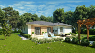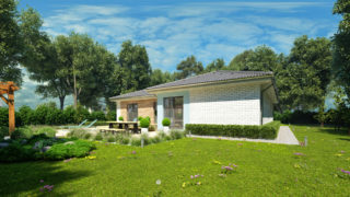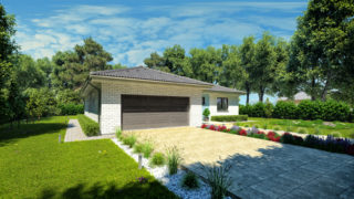 Hľadáte ten „ideálny“ bungalov? My máme riešenie v podobe tohto nádherného jednopodlažného domu. Ideálne riešenie pre väčšie rodiny, nakoľko tento nádherný murovaný rodinný dom disponuje 4 izbami. Na priestrannej terase si užije oddych celá rodina. Dom disponuje šikmou strechou, ktorá vytvára klasický a romantický vzhľad. Výhodou šikmých striech je variabilita a možnosť prispôsobenia ceľkového vzhľadu domu práve pomocou strechy. Dvojgaráž, ktorá sa nachádza priamo v rodinnom dome, poskytuje chránené parkovanie pre dve autá. Pôdorys rodinného domu má tvar písmena ''L'', čo zaručuje pocit súkromia zo strany susedov. Pri stavbe domu treba zohľadniť aj dostatočné krytie terasy. Ďalšia toaleta poteší nielen návštevy. Technická miestnosť je praktickou súčasťou domu, nemusíte sa starať o to, kam umiestniť práčku, sušicku, kotoľ, príp. tepeľné čerpadlo. Projekt domu ako aj stavba domu na kľúč je dostupná v dvoch prevedeniach: môžete si zvoliť alternatívu, či Vám vyhovuje viac klasický murovaný alebo skôr montovaný rodinný dom. Projekt tohto nízkoenergetického domu je dostupný aj v zrkadlovom prevedení, takisto sú možné menšie aj väčšie úpravy v projekte. V prípade stavby domu si môžete zvoliť alternatívy: holodom, hrubá stavba alebo rodinný dom na kľúč.