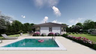 Projekt bungalovu predstavuje ideálne bývanie pre tých, ktorí uprednostňujú jednopodlažné rodinné domy. Krásne 3 spálne tohto rodinného domu zaručujú pokojné bývanie pre stredne veľkú až veľkú rodinu.
