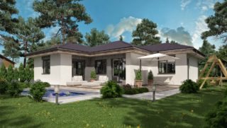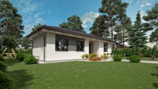 Krásny projekt bungalovu, vhodný na rovinatý alebo mierne svahovitý terén. Tento priestranný 4 izbový rodinný dom je ideálny pre väčšiu rodinu. Projekt domu je obohatený aj o veľké sklenené plochy v obývacej izbe, čo zaručuje krásne presvetlené priestory. Na priestrannej terase si užije oddych celá rodina. Pôdorys rodinného domu má tvar písmena ''L'', čo zaručuje pocit súkromia zo strany susedov. Pri stavbe domu treba zohľadniť aj dostatočné krytie terasy. Samostatný šatník je snom azda každej ženy, kde sa pohodlne zmestí všetok oblečenie. Ďalšia toaleta poteší nielen návštevy. Technická miestnosť je praktickou súčasťou domu, nemusíte sa starať o to, kam umiestniť práčku, sušicku, kotoľ, príp. tepeľné čerpadlo. Projekt domu ako aj stavba domu na kľúč je dostupná v dvoch prevedeniach: môžete si zvoliť alternatívu, či Vám vyhovuje viac klasický murovaný alebo skôr montovaný rodinný dom. Projekt tohto nízkoenergetického domu je dostupný aj v zrkadlovom prevedení, takisto sú možné menšie aj väčšie úpravy v projekte. V prípade stavby domu si môžete zvoliť alternatívy: holodom, hrubá stavba alebo rodinný dom na kľúč.
