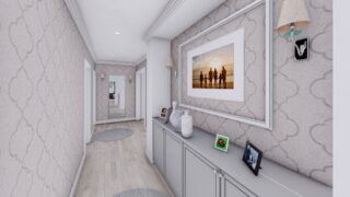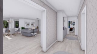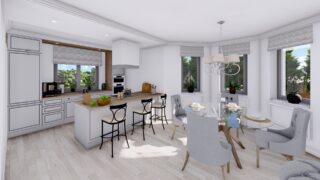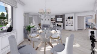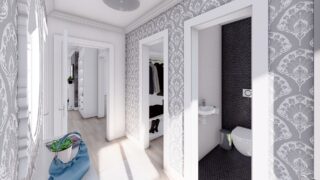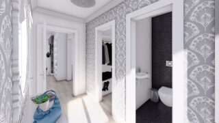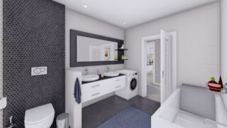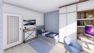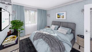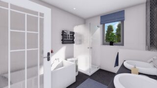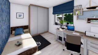 Krásny projekt bungalovu, vhodný na rovinatý alebo mierne svahovitý terén. Tento priestranný 4 izbový rodinný dom je ideálny pre väčšiu rodinu. Dom disponuje šikmou strechou, ktorá vytvára klasický a romantický vzhľad. Výhodou šikmých striech je variabilita a možnosť prispôsobenia ceľkového vzhľadu domu práve pomocou strechy. Pôdorys rodinného domu má tvar písmena ''L'', čo zaručuje pocit súkromia zo strany susedov. Pri stavbe domu treba zohľadniť aj dostatočné krytie terasy. Ku kuchyni prislúcha aj špajza, ktorá je veľmi praktickým riešením na umiestnenie veľkého množstva jedla a kuchynského náradia. Ďalšia toaleta poteší nielen návštevy. Priestrannú obývaciu časť tvorí aj americká kuchyňa, ktorá môže byť vybavená aj kuchynským ostrovčekom. Táto forma kuchyne je veľmi moderná a ponúka veľa kreatívnej slobody pri varení. Projekt domu je obohatený aj o veľké sklenené plochy v obývacej izbe, čo zaručuje krásne presvetlené priestory. Samostatný šatník je snom azda každej ženy, kde sa pohodlne zmestí všetok oblečenie. Technická miestnosť je praktickou súčasťou domu, nemusíte sa starať o to, kam umiestniť práčku, sušicku, kotoľ, príp. tepeľné čerpadlo. Projekt domu ako aj stavba domu na kľúč je dostupná v dvoch prevedeniach: môžete si zvoliť alternatívu, či Vám vyhovuje viac klasický murovaný alebo skôr montovaný rodinný dom. Projekt tohto nízkoenergetického domu je dostupný aj v zrkadlovom prevedení, takisto sú možné menšie aj väčšie úpravy v projekte. V prípade stavby domu si môžete zvoliť alternatívy: holodom, hrubá stavba alebo rodinný dom na kľúč.