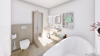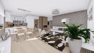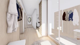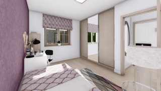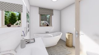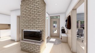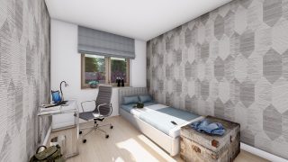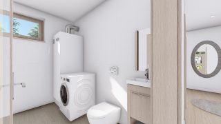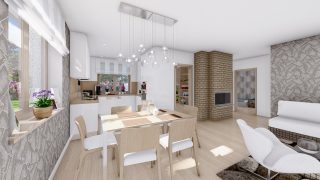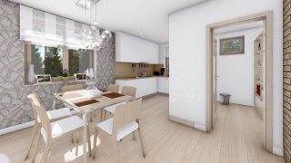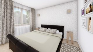 Krásny projekt bungalovu, vhodný na rovinatý alebo mierne svahovitý terén. Tento priestranný 4 izbový rodinný dom je ideálny pre väčšiu rodinu. Dom disponuje šikmou strechou, ktorá vytvára klasický a romantický vzhľad. Výhodou šikmých striech je variabilita a možnosť prispôsobenia ceľkového vzhľadu domu práve pomocou strechy. Samostatný šatník je snom azda každej ženy, kde sa pohodlne zmestí všetok oblečenie. Ku kuchyni prislúcha aj špajza, ktorá je veľmi praktickým riešením na umiestnenie veľkého množstva jedla a kuchynského náradia. Ďalšia toaleta poteší nielen návštevy. Technická miestnosť je praktickou súčasťou domu, nemusíte sa starať o to, kam umiestniť práčku, sušicku, kotoľ, príp. tepeľné čerpadlo. Projekt domu ako aj stavba domu na kľúč je dostupná v dvoch prevedeniach: môžete si zvoliť alternatívu, či Vám vyhovuje viac klasický murovaný alebo skôr montovaný rodinný dom. Projekt tohto nízkoenergetického domu je dostupný aj v zrkadlovom prevedení, takisto sú možné menšie aj väčšie úpravy v projekte. V prípade stavby domu si môžete zvoliť alternatívy: holodom, hrubá stavba alebo rodinný dom na kľúč.