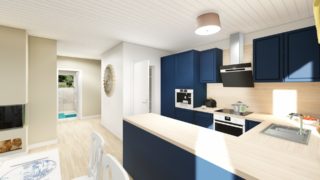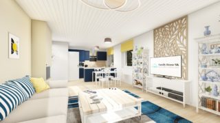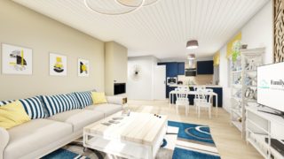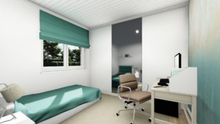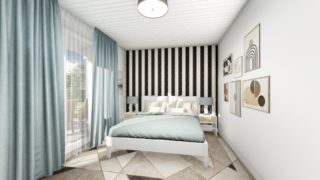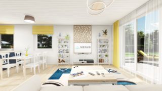 Nízkoenergetické bungalovy sú najžiadanejším typom projektov rodinných domov. Tento moderný murovaný dom so štyrmi izbami spĺňa požiadavky väčšej rodiny. Krásna veľká terasa je prístupná z obývacej izby. Dom so šikmou strechou je rozumnou voľbou z pohľadu, že tento typ strechy je menej vystavovaná nepriazni počasia ako plochá strecha. Pri kuchyni nájdete aj špajzu, kde sa uskladní veľké množstvo potravín. Ďalšia toaleta poteší nielen návštevy. Projekt domu je obohatený aj o veľké sklenené plochy v obývacej izbe, čo zaručuje krásne presvetlené priestory. Technická miestnosť je praktickou súčasťou domu, nemusíte sa starať o to, kam umiestniť práčku, sušicku, kotoľ, príp. tepeľné čerpadlo. Projekt nízkoenergetického domu je vhodný na rovinatý až mierne svahovitý terén. Projekt domu si môžete objednať aj v zrkadlovom prevedení, a sú možné aj zmeny v projekte. V prípade, ak si zvolíte stavbu domu s našou spoločnosťou, môžete si vybrať z prevedení od holodomu až po stavbu domu na kľúč. Projekt domu ako aj stavba domu na kľúč je dostupná v dvoch prevedeniach: môžete si zvoliť alternatívu, či Vám vyhovuje viac klasický murovaný alebo skôr montovaný rodinný dom.