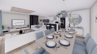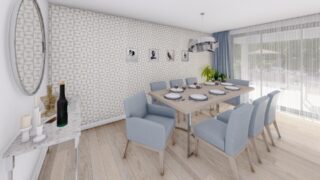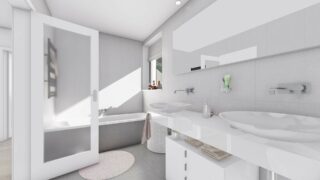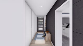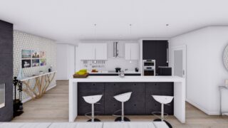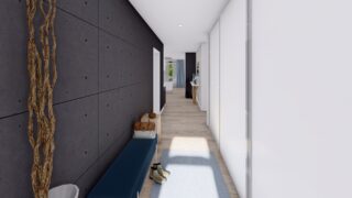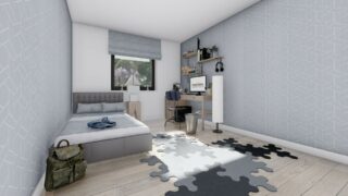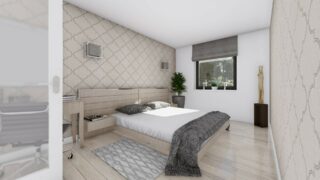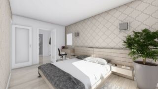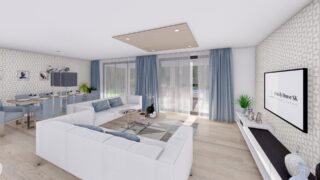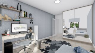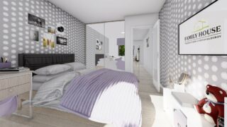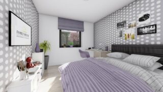Krásny projekt bungalovu, vhodný na rovinatý alebo mierne svahovitý terén. Tento priestranný rodinný dom je vhodný pre väčšiu - päťčlennú alebo štvorčlennú rodinu s hosťovskou izbou. Projekt domu je obohatený aj o veľké sklenené plochy v obývacej izbe, čo zaručuje krásne presvetlené priestory. Na priestrannej terase si užije oddych celá rodina. Dom disponuje šikmou strechou, ktorá vytvára klasický a romantický vzhľad. Výhodou šikmých striech je variabilita a možnosť prispôsobenia ceľkového vzhľadu domu práve pomocou strechy. Rodinný dom je vybavený dvojgarážou, čím sa poskytne miesto nielen pre Vaše autá, ale môže slúžiť aj ako odkladací priestor pre rôzne náradia. Ďalšia kúpeľňa okrem tej hlavnej poteší každého člena rodiny. Samostatný šatník je snom azda každej ženy, kde sa pohodlne zmestí všetok oblečenie. Ku kuchyni prislúcha aj špajza, ktorá je veľmi praktickým riešením na umiestnenie veľkého množstva jedla a kuchynského náradia. Technická miestnosť je praktickou súčasťou domu, nemusíte sa starať o to, kam umiestniť práčku, sušicku, kotoľ, príp. tepeľné čerpadlo. Projekt domu ako aj stavba domu na kľúč je dostupná v dvoch prevedeniach: môžete si zvoliť alternatívu, či Vám vyhovuje viac klasický murovaný alebo skôr montovaný rodinný dom. Projekt tohto nízkoenergetického domu je dostupný aj v zrkadlovom prevedení, takisto sú možné menšie aj väčšie úpravy v projekte. V prípade stavby domu si môžete zvoliť alternatívy: holodom, hrubá stavba alebo rodinný dom na kľúč.