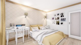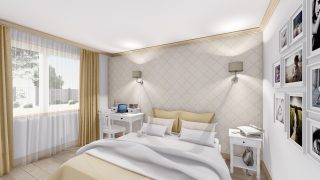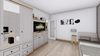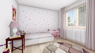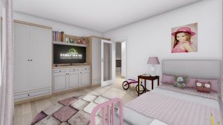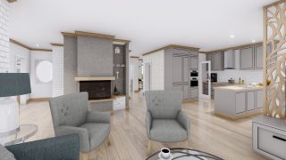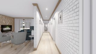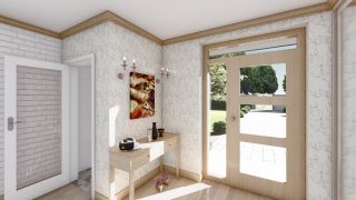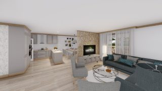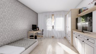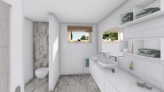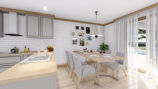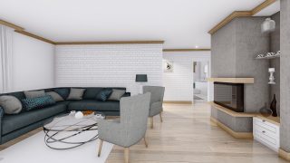 Projekt bungalovu predstavuje ideálne bývanie pre tých, ktorí uprednostňujú jednopodlažné rodinné domy. 5 izbový dom vhodný pre väčšie rodiny. Dispozícia rodinného domu vďaka svojim veľkorysým rozmerom vyhovuje všetkým členom rodiny, kde každý člen rodiny bude mať svoj vlastný priestor. Pôdorys rodinného domu má tvar písmena ''L'', čo zaručuje pocit súkromia zo strany susedov. Pri stavbe domu treba zohľadniť aj dostatočné krytie terasy. Priestrannú obývaciu časť tvorí aj americká kuchyňa, ktorá môže byť vybavená aj kuchynským ostrovčekom. Táto forma kuchyne je veľmi moderná a ponúka veľa kreatívnej slobody pri varení. Ďalšia kúpeľňa okrem tej hlavnej poteší každého člena rodiny. Samostatný šatník je snom azda každej ženy, kde sa pohodlne zmestí všetok oblečenie. Ku kuchyni prislúcha aj špajza, ktorá je veľmi praktickým riešením na umiestnenie veľkého množstva jedla a kuchynského náradia. Projekt domu je obohatený aj o veľké sklenené plochy v obývacej izbe, čo zaručuje krásne presvetlené priestory. Na priestrannej terase si užije oddych celá rodina. Tento projekt veľkého rodinného domu spája v sebe veľa výhod: má vzdušnú a priestrannú dennú časť, no všetci členovia majú aj svoj vlastný priestor pre oddych. Projekt domu ako aj stavba domu na kľúč je dostupná v dvoch prevedeniach: môžete si zvoliť alternatívu, či Vám vyhovuje viac klasický murovaný alebo skôr montovaný rodinný dom. Projekt tohto nízkoenergetického domu je dostupný aj v zrkadlovom prevedení, takisto sú možné menšie aj väčšie úpravy v projekte. V prípade stavby domu si môžete zvoliť alternatívy: holodom, hrubá stavba alebo rodinný dom na kľúč.