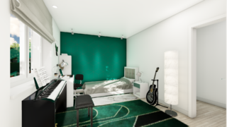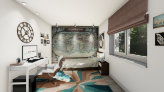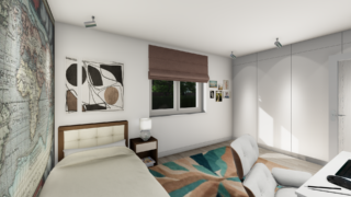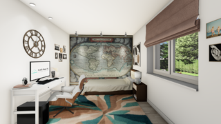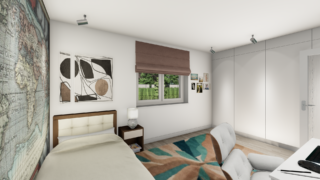 Projekt bungalovu predstavuje ideálne bývanie pre tých, ktorí uprednostňujú jednopodlažné rodinné domy. 5 izbový dom vhodný pre väčšie rodiny. Dispozícia rodinného domu vďaka svojim veľkorysým rozmerom vyhovuje všetkým členom rodiny, kde každý člen rodiny bude mať svoj vlastný priestor. V dome nájdete aj kráľovstvo rodičov, kde spálňa rodičov je vybavená vlastným šatníkom a kúpeľňou. Priestrannú obývaciu časť tvorí aj americká kuchyňa, ktorá môže byť vybavená aj kuchynským ostrovčekom. Táto forma kuchyne je veľmi moderná a ponúka veľa kreatívnej slobody pri varení. Projekt domu je obohatený aj o veľké sklenené plochy v obývacej izbe, čo zaručuje krásne presvetlené priestory. Na priestrannej terase si užije oddych celá rodina. Dom disponuje šikmou strechou, ktorá vytvára klasický a romantický vzhľad. Výhodou šikmých striech je variabilita a možnosť prispôsobenia ceľkového vzhľadu domu práve pomocou strechy. Ďalšia kúpeľňa okrem tej hlavnej poteší každého člena rodiny. Samostatný šatník je snom azda každej ženy, kde sa pohodlne zmestí všetok oblečenie. Ku kuchyni prislúcha aj špajza, ktorá je veľmi praktickým riešením na umiestnenie veľkého množstva jedla a kuchynského náradia. Rodinný dom je vybavený dvojgarážou, čím sa poskytne miesto nielen pre Vaše autá, ale môže slúžiť aj ako odkladací priestor pre rôzne náradia. Tento projekt veľkého rodinného domu spája v sebe veľa výhod: má vzdušnú a priestrannú dennú časť, no všetci členovia majú aj svoj vlastný priestor pre oddych. Technická miestnosť je praktickou súčasťou domu, nemusíte sa starať o to, kam umiestniť práčku, sušicku, kotoľ, príp. tepeľné čerpadlo. Projekt domu ako aj stavba domu na kľúč je dostupná v dvoch prevedeniach: môžete si zvoliť alternatívu, či Vám vyhovuje viac klasický murovaný alebo skôr montovaný rodinný dom. Projekt tohto nízkoenergetického domu je dostupný aj v zrkadlovom prevedení, takisto sú možné menšie aj väčšie úpravy v projekte. V prípade stavby domu si môžete zvoliť alternatívy: holodom, hrubá stavba alebo rodinný dom na kľúč.
