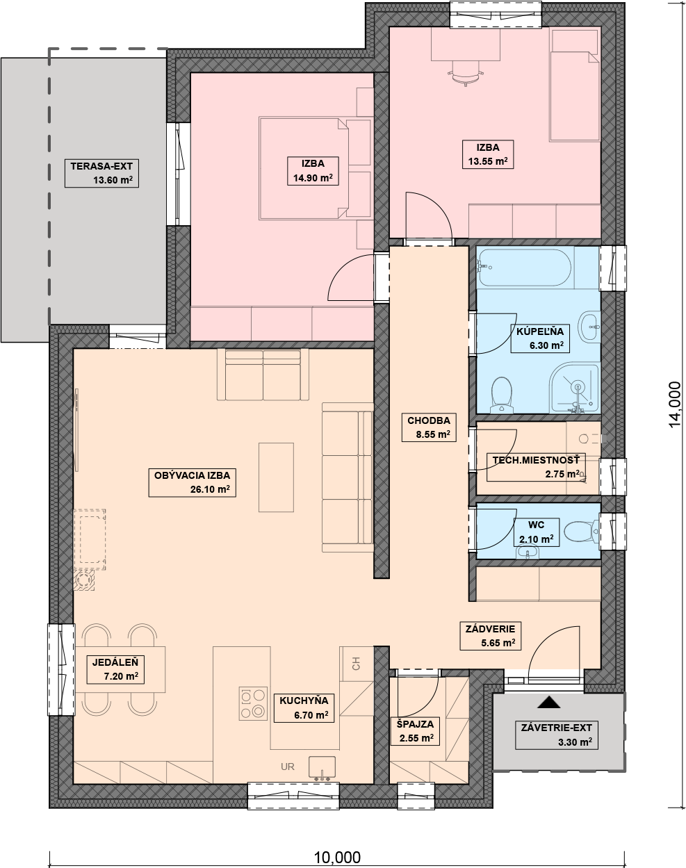 Pri navrhovaní projektov domov vždy dbáme na to, aby pôdorys a celkové dispozičné riešenie domu bol premyslený do najmenších detailov, a tým sa získa plnohodnotný a funkčný domov. Vždy sa snažíme o to, aby dom bol plne funkčný nielen v interiéri, ale mal zaujímavý aj exteriér. Vyberte si tento rodinný dom na základe jeho rozumného pôdorysu!