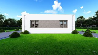 Krásny projekt bungalovu, vhodný na rovinatý alebo mierne svahovitý terén. Tento priestranný rodinný dom je vhodný pre väčšiu - päťčlennú alebo štvorčlennú rodinu s hosťovskou izbou. Projekt domu je obohatený aj o veľké sklenené plochy v obývacej izbe, čo zaručuje krásne presvetlené priestory. Na priestrannej terase si užije oddych celá rodina. Rodinné domy s plochou strechou, príp. rovnou strechou sú jedinečným a zaujímavým riešením, ako získať nevšedný a moderný vzhľad domu. Ďalšia kúpeľňa okrem tej hlavnej poteší každého člena rodiny. Samostatný šatník je snom azda každej ženy, kde sa pohodlne zmestí všetok oblečenie. Ďalšia toaleta poteší nielen návštevy. Technická miestnosť je praktickou súčasťou domu, nemusíte sa starať o to, kam umiestniť práčku, sušicku, kotoľ, príp. tepeľné čerpadlo. V prípade tohto domu si môžete zvoliť projekt domu ako aj stavbu domu na kľúč v dvoch prevedeniach: moderný dom, prípadne pasívny dom, ktorý môže byť až 3x úspornejší, ako klasický rodinný dom. Projekt tohto nízkoenergetického domu je dostupný aj v zrkadlovom prevedení, takisto sú možné menšie aj väčšie úpravy v projekte. V prípade stavby domu si môžete zvoliť alternatívy: holodom, hrubá stavba alebo rodinný dom na kľúč.