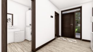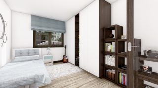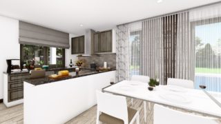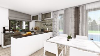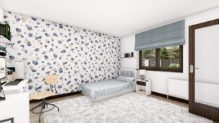 Krásny projekt bungalovu, vhodný na rovinatý alebo mierne svahovitý terén. Tento priestranný rodinný dom je vhodný pre väčšiu - päťčlennú alebo štvorčlennú rodinu s hosťovskou izbou. Projekt domu je obohatený aj o veľké sklenené plochy v obývacej izbe, čo zaručuje krásne presvetlené priestory. Na priestrannej terase si užije oddych celá rodina. Rodinné domy s plochou strechou, príp. rovnou strechou sú jedinečným a zaujímavým riešením, ako získať nevšedný a moderný vzhľad domu. Ďalšia kúpeľňa okrem tej hlavnej poteší každého člena rodiny. Samostatný šatník je snom azda každej ženy, kde sa pohodlne zmestí všetok oblečenie. Ďalšia toaleta poteší nielen návštevy. Technická miestnosť je praktickou súčasťou domu, nemusíte sa starať o to, kam umiestniť práčku, sušicku, kotoľ, príp. tepeľné čerpadlo. V prípade tohto domu si môžete zvoliť projekt domu ako aj stavbu domu na kľúč v dvoch prevedeniach: moderný dom, prípadne pasívny dom, ktorý môže byť až 3x úspornejší, ako klasický rodinný dom. Projekt tohto nízkoenergetického domu je dostupný aj v zrkadlovom prevedení, takisto sú možné menšie aj väčšie úpravy v projekte. V prípade stavby domu si môžete zvoliť alternatívy: holodom, hrubá stavba alebo rodinný dom na kľúč.