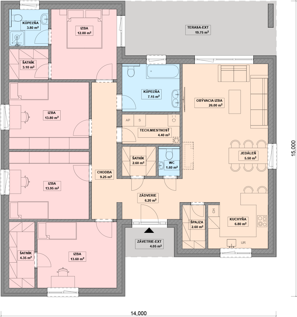 Pri navrhovaní projektov domov vždy dbáme na to, aby pôdorys a celkové dispozičné riešenie domu bol premyslený do najmenších detailov, a tým sa získa plnohodnotný a funkčný domov. Vždy sa snažíme o to, aby dom bol plne funkčný nielen v interiéri, ale mal zaujímavý aj exteriér. Vyberte si tento rodinný dom na základe jeho rozumného pôdorysu!