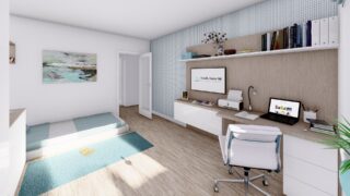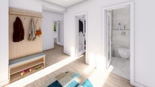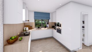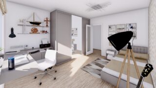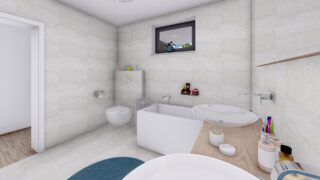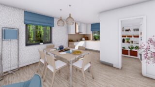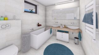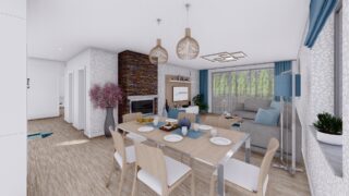 Krásny projekt bungalovu, vhodný na rovinatý alebo mierne svahovitý terén. Tento priestranný rodinný dom je vhodný pre väčšiu - päťčlennú alebo štvorčlennú rodinu s hosťovskou izbou. Rodinné domy s plochou strechou, príp. rovnou strechou sú jedinečným a zaujímavým riešením, ako získať nevšedný a moderný vzhľad domu. Pôdorys rodinného domu má tvar písmena ''L'', čo zaručuje pocit súkromia zo strany susedov. Pri stavbe domu treba zohľadniť aj dostatočné krytie terasy. Tento projekt veľkého rodinného domu spája v sebe veľa výhod: má vzdušnú a priestrannú dennú časť, no všetci členovia majú aj svoj vlastný priestor pre oddych. Ďalšia kúpeľňa okrem tej hlavnej poteší každého člena rodiny. Samostatný šatník je snom azda každej ženy, kde sa pohodlne zmestí všetok oblečenie. V dome nájdete aj kráľovstvo rodičov, kde spálňa rodičov je vybavená vlastným šatníkom a kúpeľňou. Projekt domu je obohatený aj o veľké sklenené plochy v obývacej izbe, čo zaručuje krásne presvetlené priestory. Na priestrannej terase si užije oddych celá rodina. Ku kuchyni prislúcha aj špajza, ktorá je veľmi praktickým riešením na umiestnenie veľkého množstva jedla a kuchynského náradia. Ďalšia toaleta poteší nielen návštevy. Technická miestnosť je praktickou súčasťou domu, nemusíte sa starať o to, kam umiestniť práčku, sušicku, kotoľ, príp. tepeľné čerpadlo. V prípade tohto domu si môžete zvoliť projekt domu ako aj stavbu domu na kľúč v dvoch prevedeniach: moderný dom, prípadne pasívny dom, ktorý môže byť až 3x úspornejší, ako klasický rodinný dom. Projekt tohto nízkoenergetického domu je dostupný aj v zrkadlovom prevedení, takisto sú možné menšie aj väčšie úpravy v projekte. V prípade stavby domu si môžete zvoliť alternatívy: holodom, hrubá stavba alebo rodinný dom na kľúč.