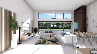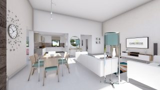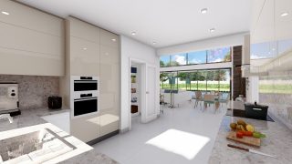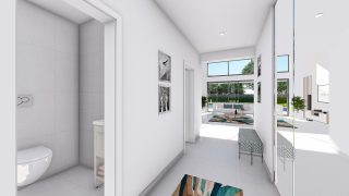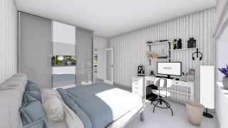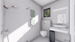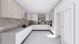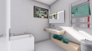 Krásny projekt bungalovu, vhodný na rovinatý alebo mierne svahovitý terén. Tento priestranný rodinný dom je vhodný pre väčšiu - päťčlennú alebo štvorčlennú rodinu s hosťovskou izbou. Tento projekt veľkého rodinného domu spája v sebe veľa výhod: má vzdušnú a priestrannú dennú časť, no všetci členovia majú aj svoj vlastný priestor pre oddych. Ďalšia kúpeľňa okrem tej hlavnej poteší každého člena rodiny. Samostatný šatník je snom azda každej ženy, kde sa pohodlne zmestí všetok oblečenie. Ku kuchyni prislúcha aj špajza, ktorá je veľmi praktickým riešením na umiestnenie veľkého množstva jedla a kuchynského náradia. Projekt domu je obohatený aj o veľké sklenené plochy v obývacej izbe, čo zaručuje krásne presvetlené priestory. Na priestrannej terase si užije oddych celá rodina. Ďalšia toaleta poteší nielen návštevy. Technická miestnosť je praktickou súčasťou domu, nemusíte sa starať o to, kam umiestniť práčku, sušicku, kotoľ, príp. tepeľné čerpadlo. Rodinné domy s plochou strechou, príp. rovnou strechou sú jedinečným a zaujímavým riešením, ako získať nevšedný a moderný vzhľad domu. V prípade tohto domu si môžete zvoliť projekt domu ako aj stavbu domu na kľúč v dvoch prevedeniach: moderný dom, prípadne pasívny dom, ktorý môže byť až 3x úspornejší, ako klasický rodinný dom. Projekt tohto nízkoenergetického domu je dostupný aj v zrkadlovom prevedení, takisto sú možné menšie aj väčšie úpravy v projekte. V prípade stavby domu si môžete zvoliť alternatívy: holodom, hrubá stavba alebo rodinný dom na kľúč.