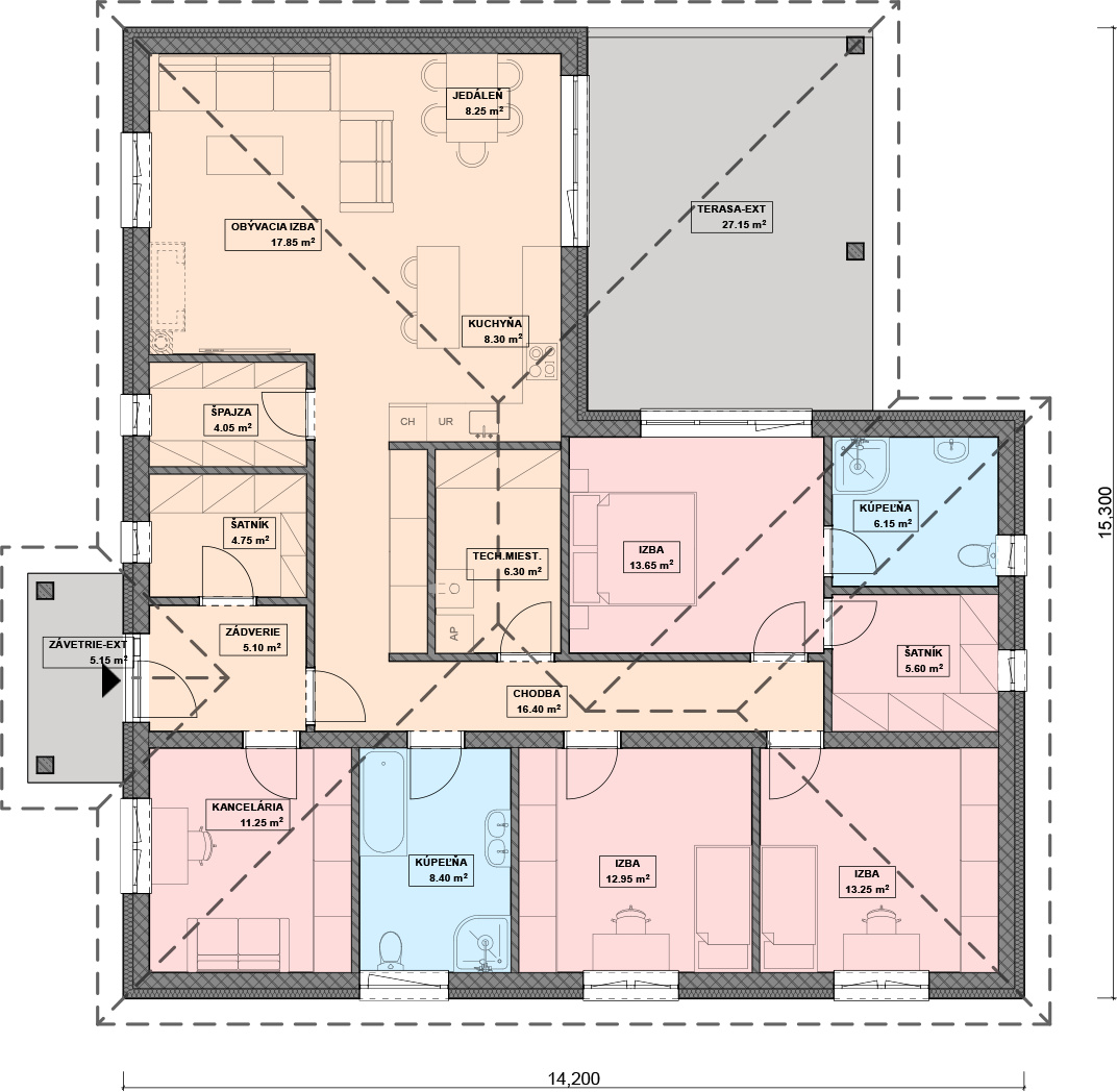 Pri navrhovaní projektov domov vždy dbáme na to, aby pôdorys a celkové dispozičné riešenie domu bol premyslený do najmenších detailov, a tým sa získa plnohodnotný a funkčný domov. Vždy sa snažíme o to, aby dom bol plne funkčný nielen v interiéri, ale mal zaujímavý aj exteriér. Vyberte si tento rodinný dom na základe jeho rozumného pôdorysu!