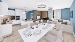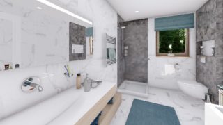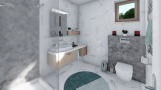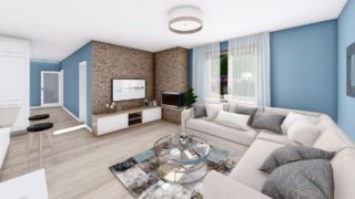 Hľadáte ten „ideálny“ bungalov? My máme riešenie v podobe tohto nádherného jednopodlažného domu. V dome nájdete aj kráľovstvo rodičov, kde spálňa rodičov je vybavená vlastným šatníkom a kúpeľňou. Priestrannú obývaciu časť tvorí aj americká kuchyňa, ktorá môže byť vybavená aj kuchynským ostrovčekom. Táto forma kuchyne je veľmi moderná a ponúka veľa kreatívnej slobody pri varení. Tento 5- izbový rodinný dom je vhodný pre viacčlennú rodinu, s moderným dispozičným riešením. Dom disponuje šikmou strechou, ktorá vytvára klasický a romantický vzhľad. Výhodou šikmých striech je variabilita a možnosť prispôsobenia ceľkového vzhľadu domu práve pomocou strechy. Pôdorys rodinného domu má tvar písmena ''L'', čo zaručuje pocit súkromia zo strany susedov. Pri stavbe domu treba zohľadniť aj dostatočné krytie terasy. Tento projekt veľkého rodinného domu spája v sebe veľa výhod: má vzdušnú a priestrannú dennú časť, no všetci členovia majú aj svoj vlastný priestor pre oddych. Ďalšia kúpeľňa okrem tej hlavnej poteší každého člena rodiny. Samostatný šatník je snom azda každej ženy, kde sa pohodlne zmestí všetok oblečenie. Ku kuchyni prislúcha aj špajza, ktorá je veľmi praktickým riešením na umiestnenie veľkého množstva jedla a kuchynského náradia. Projekt domu je obohatený aj o veľké sklenené plochy v obývacej izbe, čo zaručuje krásne presvetlené priestory. Na priestrannej terase si užije oddych celá rodina. Technická miestnosť je praktickou súčasťou domu, nemusíte sa starať o to, kam umiestniť práčku, sušicku, kotoľ, príp. tepeľné čerpadlo. Projekt tohto nízkoenergetického domu je dostupný aj v zrkadlovom prevedení, takisto sú možné menšie aj väčšie úpravy v projekte. V prípade stavby domu si môžete zvoliť alternatívy: holodom, hrubá stavba alebo rodinný dom na kľúč. Projekt domu ako aj stavba domu na kľúč je dostupná v dvoch prevedeniach: môžete si zvoliť alternatívu, či Vám vyhovuje viac klasický murovaný alebo skôr montovaný rodinný dom.