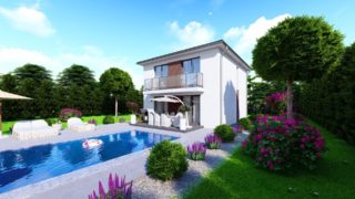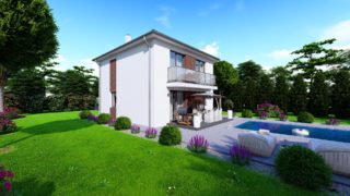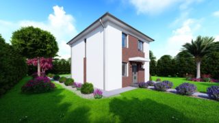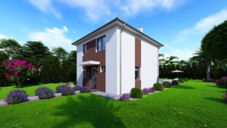 Prednosťou poschodového domu je fakt, že sa dá pohodlne a prakticky oddeliť denná časť od nočnej. Tento moderný murovaný dom so štyrmi izbami spĺňa požiadavky väčšej rodiny. Krásna veľká terasa je prístupná z obývacej izby. Dom so šikmou strechou je rozumnou voľbou z pohľadu, že tento typ strechy je menej vystavovaná nepriazni počasia ako plochá strecha. Tvar rodinného domu zaručuje pohodlné umiestnenie aj na užší typ pozemku. Pri kuchyni nájdete aj špajzu, kde sa uskladní veľké množstvo potravín. Ďalšia toaleta poteší nielen návštevy. Technická miestnosť je praktickou súčasťou domu, nemusíte sa starať o to, kam umiestniť práčku, sušicku, kotoľ, príp. tepeľné čerpadlo. Priestrannú obývaciu časť tvorí aj americká kuchyňa, ktorá môže byť vybavená aj kuchynským ostrovčekom. Táto forma kuchyne je veľmi moderná a ponúka veľa kreatívnej slobody pri varení. Projekt domu je obohatený aj o veľké sklenené plochy v obývacej izbe, čo zaručuje krásne presvetlené priestory. Samostatný šatník je skvelou voľbou pre umiestnenie veľkého množstva oblečenia. Projekt nízkoenergetického domu je vhodný na rovinatý až mierne svahovitý terén. Projekt domu si môžete objednať aj v zrkadlovom prevedení, a sú možné aj zmeny v projekte. V prípade, ak si zvolíte stavbu domu s našou spoločnosťou, môžete si vybrať z prevedení od holodomu až po stavbu domu na kľúč. Projekt domu ako aj stavba domu na kľúč je dostupná v dvoch prevedeniach: môžete si zvoliť alternatívu, či Vám vyhovuje viac klasický murovaný alebo skôr montovaný rodinný dom.