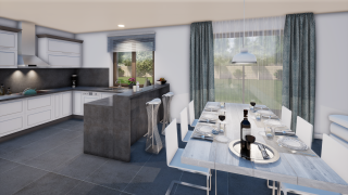 Projekt poschodového domu je ideálnou voľbou v prípade, ak sme obmedzení veľkosťou pozemku a zároveň chceme získať čo najväčšiu úžitkovú plochu. Tento priestranný 4 izbový rodinný dom je ideálny pre väčšiu rodinu. Projekt domu je obohatený aj o veľké sklenené plochy v obývacej izbe, čo zaručuje krásne presvetlené priestory. Dom disponuje šikmou strechou, ktorá vytvára klasický a romantický vzhľad. Výhodou šikmých striech je variabilita a možnosť prispôsobenia ceľkového vzhľadu domu práve pomocou strechy. Rodinný dom je vybavený dvojgarážou, čím sa poskytne miesto nielen pre Vaše autá, ale môže slúžiť aj ako odkladací priestor pre rôzne náradia. Tento projekt veľkého rodinného domu spája v sebe veľa výhod: má vzdušnú a priestrannú dennú časť, no všetci členovia majú aj svoj vlastný priestor pre oddych. Ďalšia kúpeľňa okrem tej hlavnej poteší každého člena rodiny. Samostatný šatník je snom azda každej ženy, kde sa pohodlne zmestí všetok oblečenie. Ku kuchyni prislúcha aj špajza, ktorá je veľmi praktickým riešením na umiestnenie veľkého množstva jedla a kuchynského náradia. Projekt domu ako aj stavba domu na kľúč je dostupná v dvoch prevedeniach: môžete si zvoliť alternatívu, či Vám vyhovuje viac klasický murovaný alebo skôr montovaný rodinný dom. Projekt tohto nízkoenergetického domu je dostupný aj v zrkadlovom prevedení, takisto sú možné menšie aj väčšie úpravy v projekte. V prípade stavby domu si môžete zvoliť alternatívy: holodom, hrubá stavba alebo rodinný dom na kľúč.