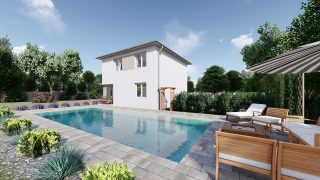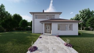 Projekt poschodového domu je ideálnou voľbou v prípade, ak sme obmedzení veľkosťou pozemku a zároveň chceme získať čo najväčšiu úžitkovú plochu. Tento priestranný 4 izbový rodinný dom je ideálny pre väčšiu rodinu. Dom disponuje šikmou strechou, ktorá vytvára klasický a romantický vzhľad. Výhodou šikmých striech je variabilita a možnosť prispôsobenia ceľkového vzhľadu domu práve pomocou strechy. Ďalšia kúpeľňa okrem tej hlavnej poteší každého člena rodiny. Samostatný šatník je snom azda každej ženy, kde sa pohodlne zmestí všetok oblečenie. Projekt domu ako aj stavba domu na kľúč je dostupná v dvoch prevedeniach: môžete si zvoliť alternatívu, či Vám vyhovuje viac klasický murovaný alebo skôr montovaný rodinný dom. Projekt tohto nízkoenergetického domu je dostupný aj v zrkadlovom prevedení, takisto sú možné menšie aj väčšie úpravy v projekte. V prípade stavby domu si môžete zvoliť alternatívy: holodom, hrubá stavba alebo rodinný dom na kľúč.