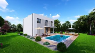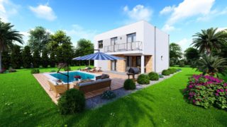 Projekt poschodového domu je ideálnou voľbou v prípade, ak sme obmedzení veľkosťou pozemku a zároveň chceme získať čo najväčšiu úžitkovú plochu. Dispozícia 6-izbového domu vďaka svojim veľkorysým rozmerom vyhovuje všetkým členom rodiny, kde každý člen rodiny bude mať svoj vlastný priestor. Rodinné domy s plochou strechou, príp. rovnou strechou sú jedinečným a zaujímavým riešením, ako získať nevšedný a moderný vzhľad domu. Ku kuchyni prislúcha aj špajza, ktorá je veľmi praktickým riešením na umiestnenie veľkého množstva jedla a kuchynského náradia. Ďalšia toaleta poteší nielen návštevy. Projekt domu je obohatený aj o veľké sklenené plochy v obývacej izbe, čo zaručuje krásne presvetlené priestory. Na priestrannej terase si užije oddych celá rodina. Tento projekt veľkého rodinného domu spája v sebe veľa výhod: má vzdušnú a priestrannú dennú časť, no všetci členovia majú aj svoj vlastný priestor pre oddych. Ďalšia kúpeľňa okrem tej hlavnej poteší každého člena rodiny. Samostatný šatník je snom azda každej ženy, kde sa pohodlne zmestí všetok oblečenie. V prípade tohto domu si môžete zvoliť projekt domu ako aj stavbu domu na kľúč v dvoch prevedeniach: moderný dom, prípadne pasívny dom, ktorý môže byť až 3x úspornejší, ako klasický rodinný dom. Projekt tohto nízkoenergetického domu je dostupný aj v zrkadlovom prevedení, takisto sú možné menšie aj väčšie úpravy v projekte. V prípade stavby domu si môžete zvoliť alternatívy: holodom, hrubá stavba alebo rodinný dom na kľúč.
