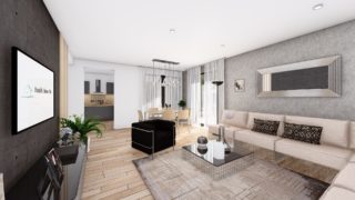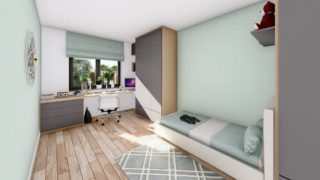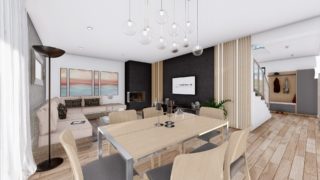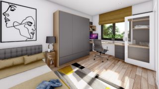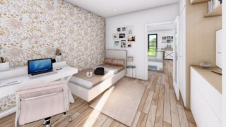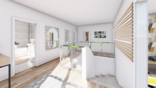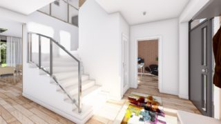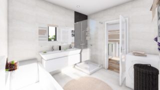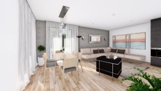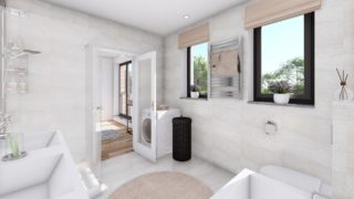 Projekt poschodového domu je ideálnou voľbou v prípade, ak sme obmedzení veľkosťou pozemku a zároveň chceme získať čo najväčšiu úžitkovú plochu. Dispozícia 6-izbového domu vďaka svojim veľkorysým rozmerom vyhovuje všetkým členom rodiny, kde každý člen rodiny bude mať svoj vlastný priestor. Rodinné domy s plochou strechou, príp. rovnou strechou sú jedinečným a zaujímavým riešením, ako získať nevšedný a moderný vzhľad domu. Ku kuchyni prislúcha aj špajza, ktorá je veľmi praktickým riešením na umiestnenie veľkého množstva jedla a kuchynského náradia. Ďalšia toaleta poteší nielen návštevy. Projekt domu je obohatený aj o veľké sklenené plochy v obývacej izbe, čo zaručuje krásne presvetlené priestory. Na priestrannej terase si užije oddych celá rodina. Tento projekt veľkého rodinného domu spája v sebe veľa výhod: má vzdušnú a priestrannú dennú časť, no všetci členovia majú aj svoj vlastný priestor pre oddych. Ďalšia kúpeľňa okrem tej hlavnej poteší každého člena rodiny. Samostatný šatník je snom azda každej ženy, kde sa pohodlne zmestí všetok oblečenie. V prípade tohto domu si môžete zvoliť projekt domu ako aj stavbu domu na kľúč v dvoch prevedeniach: moderný dom, prípadne pasívny dom, ktorý môže byť až 3x úspornejší, ako klasický rodinný dom. Projekt tohto nízkoenergetického domu je dostupný aj v zrkadlovom prevedení, takisto sú možné menšie aj väčšie úpravy v projekte. V prípade stavby domu si môžete zvoliť alternatívy: holodom, hrubá stavba alebo rodinný dom na kľúč.