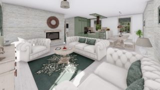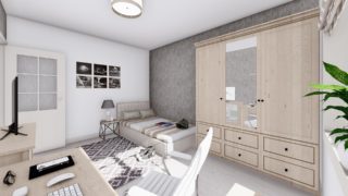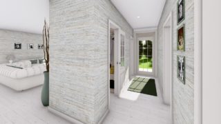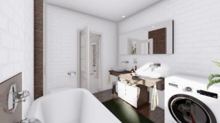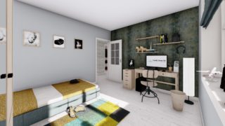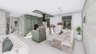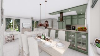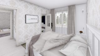 Krásny projekt bungalovu, vhodný na rovinatý alebo mierne svahovitý terén. Tento priestranný rodinný dom je vhodný pre väčšiu - päťčlennú alebo štvorčlennú rodinu s hosťovskou izbou. Priestrannú obývaciu časť tvorí aj americká kuchyňa, ktorá môže byť vybavená aj kuchynským ostrovčekom. Táto forma kuchyne je veľmi moderná a ponúka veľa kreatívnej slobody pri varení. Projekt domu je obohatený aj o veľké sklenené plochy v obývacej izbe, čo zaručuje krásne presvetlené priestory. Na priestrannej terase si užije oddych celá rodina. Dom disponuje šikmou strechou, ktorá vytvára klasický a romantický vzhľad. Výhodou šikmých striech je variabilita a možnosť prispôsobenia ceľkového vzhľadu domu práve pomocou strechy. Projekt domu je dokonca vhodný aj na úzky pozemok. Ďalšia toaleta poteší nielen návštevy. Projekt domu ako aj stavba domu na kľúč je dostupná v dvoch prevedeniach: môžete si zvoliť alternatívu, či Vám vyhovuje viac klasický murovaný alebo skôr montovaný rodinný dom. Projekt tohto nízkoenergetického domu je dostupný aj v zrkadlovom prevedení, takisto sú možné menšie aj väčšie úpravy v projekte. V prípade stavby domu si môžete zvoliť alternatívy: holodom, hrubá stavba alebo rodinný dom na kľúč.