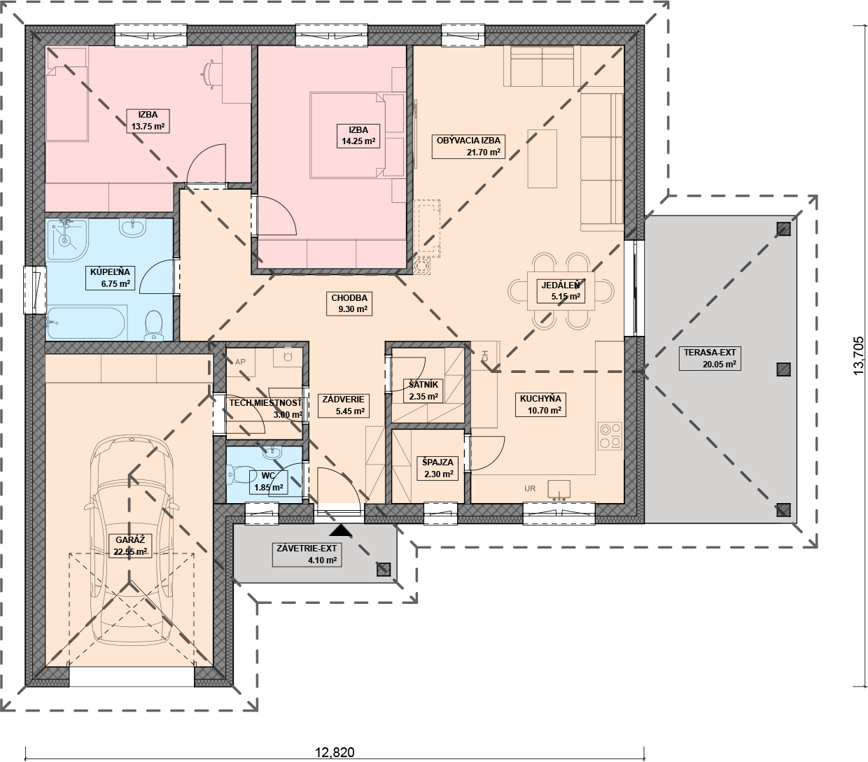 Pri navrhovaní projektov domov vždy dbáme na to, aby pôdorys a celkové dispozičné riešenie domu bol premyslený do najmenších detailov, a tým sa získa plnohodnotný a funkčný domov. Vždy sa snažíme o to, aby dom bol plne funkčný nielen v interiéri, ale mal zaujímavý aj exteriér. Vyberte si tento rodinný dom na základe jeho rozumného pôdorysu!
