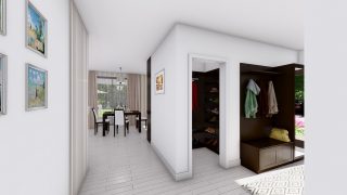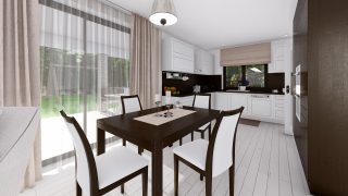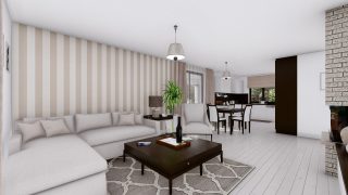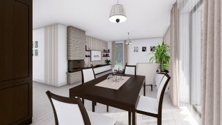 Krásny projekt bungalovu, vhodný na rovinatý alebo mierne svahovitý terén. Tento skromný 3 izbový dom je ideálny pre troj- až štvorčlennú rodinu. Na priestrannej terase si užije oddych celá rodina. Dom disponuje šikmou strechou, ktorá vytvára klasický a romantický vzhľad. Výhodou šikmých striech je variabilita a možnosť prispôsobenia ceľkového vzhľadu domu práve pomocou strechy. Tento nádherný rodinný dom disponuje aj garážou, kde sa nájde miesto nielen pre Vaše auto, ale poskytuje odkladací priestor aj pre rôzne náradia na údržbu záhrady aj auta. Samostatný šatník je snom azda každej ženy, kde sa pohodlne zmestí všetok oblečenie. Ku kuchyni prislúcha aj špajza, ktorá je veľmi praktickým riešením na umiestnenie veľkého množstva jedla a kuchynského náradia. Ďalšia toaleta poteší nielen návštevy. Technická miestnosť je praktickou súčasťou domu, nemusíte sa starať o to, kam umiestniť práčku, sušicku, kotoľ, príp. tepeľné čerpadlo. Projekt domu ako aj stavba domu na kľúč je dostupná v dvoch prevedeniach: môžete si zvoliť alternatívu, či Vám vyhovuje viac klasický murovaný alebo skôr montovaný rodinný dom. Projekt tohto nízkoenergetického domu je dostupný aj v zrkadlovom prevedení, takisto sú možné menšie aj väčšie úpravy v projekte. V prípade stavby domu si môžete zvoliť alternatívy: holodom, hrubá stavba alebo rodinný dom na kľúč.