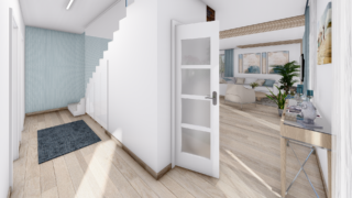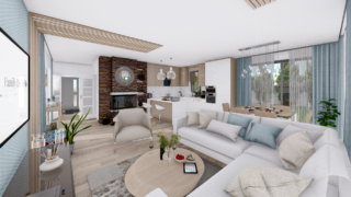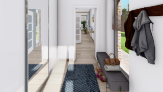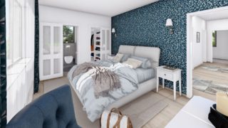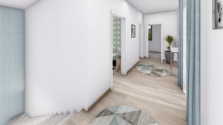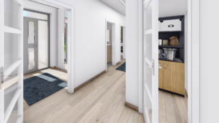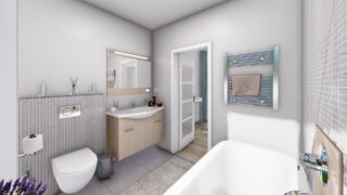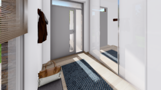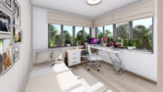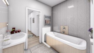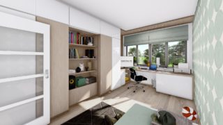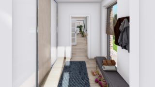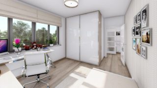 Projekty poschodových domov patria medzi obľúbené katalógové projekty domov. Ideálne riešenie pre väčšie rodiny, nakoľko tento nádherný murovaný rodinný dom disponuje 4 izbami. V dome nájdete aj kráľovstvo rodičov, kde spálňa rodičov je vybavená vlastným šatníkom a kúpeľňou. Priestrannú obývaciu časť tvorí aj americká kuchyňa, ktorá môže byť vybavená aj kuchynským ostrovčekom. Táto forma kuchyne je veľmi moderná a ponúka veľa kreatívnej slobody pri varení. Projekt domu je obohatený aj o veľké sklenené plochy v obývacej izbe, čo zaručuje krásne presvetlené priestory. Rodinné domy s plochou strechou, príp. rovnou strechou sú jedinečným a zaujímavým riešením, ako získať nevšedný a moderný vzhľad domu. Dvojgaráž, ktorá sa nachádza priamo v rodinnom dome, poskytuje chránené parkovanie pre dve autá. Dom poskytuje vhodné riešenie aj v prípade, keď na stavbu domu je k dispozícii iba úzky pozemok. Ďalšia kúpeľňa okrem tej hlavnej poteší každého člena rodiny. Samostatný šatník je snom azda každej ženy, kde sa pohodlne zmestí všetok oblečenie. Ďalšia toaleta poteší nielen návštevy. Technická miestnosť je praktickou súčasťou domu, nemusíte sa starať o to, kam umiestniť práčku, sušicku, kotoľ, príp. tepeľné čerpadlo. V prípade tohto domu si môžete zvoliť projekt domu ako aj stavbu domu na kľúč v dvoch prevedeniach: moderný dom, prípadne pasívny dom, ktorý môže byť až 3x úspornejší, ako klasický rodinný dom. Projekt tohto nízkoenergetického domu je dostupný aj v zrkadlovom prevedení, takisto sú možné menšie aj väčšie úpravy v projekte. V prípade stavby domu si môžete zvoliť alternatívy: holodom, hrubá stavba alebo rodinný dom na kľúč.