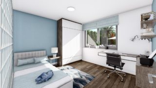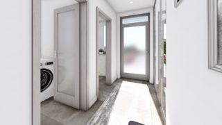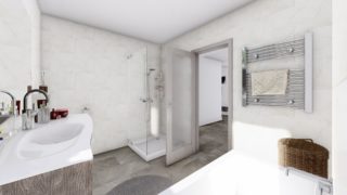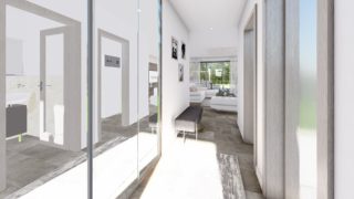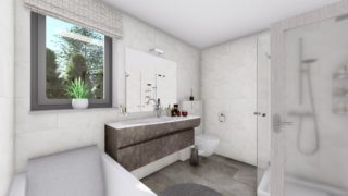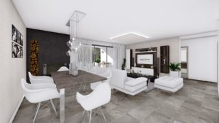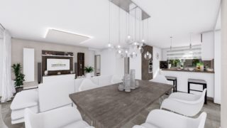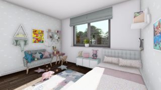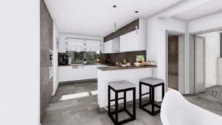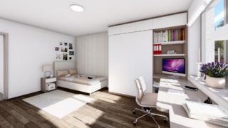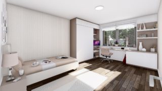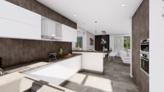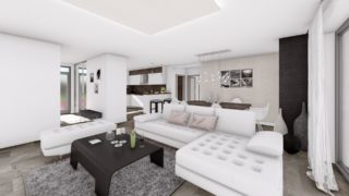 Krásny projekt bungalovu, vhodný na rovinatý alebo mierne svahovitý terén. Tento priestranný rodinný dom je vhodný pre väčšiu - päťčlennú alebo štvorčlennú rodinu s hosťovskou izbou. Projekt domu je obohatený aj o veľké sklenené plochy v obývacej izbe, čo zaručuje krásne presvetlené priestory. Na priestrannej terase si užije oddych celá rodina. Rodinné domy s plochou strechou, príp. rovnou strechou sú jedinečným a zaujímavým riešením, ako získať nevšedný a moderný vzhľad domu. Garážové státie ponúka pohodlné parkovanie priamo pri dome. Pôdorys rodinného domu má tvar písmena ''L'', čo zaručuje pocit súkromia zo strany susedov. Pri stavbe domu treba zohľadniť aj dostatočné krytie terasy. Ďalšia kúpeľňa okrem tej hlavnej poteší každého člena rodiny. Samostatný šatník je snom azda každej ženy, kde sa pohodlne zmestí všetok oblečenie. Ďalšia toaleta poteší nielen návštevy. Technická miestnosť je praktickou súčasťou domu, nemusíte sa starať o to, kam umiestniť práčku, sušicku, kotoľ, príp. tepeľné čerpadlo. V prípade tohto domu si môžete zvoliť projekt domu ako aj stavbu domu na kľúč v dvoch prevedeniach: moderný dom, prípadne pasívny dom, ktorý môže byť až 3x úspornejší, ako klasický rodinný dom. Projekt tohto nízkoenergetického domu je dostupný aj v zrkadlovom prevedení, takisto sú možné menšie aj väčšie úpravy v projekte. V prípade stavby domu si môžete zvoliť alternatívy: holodom, hrubá stavba alebo rodinný dom na kľúč.