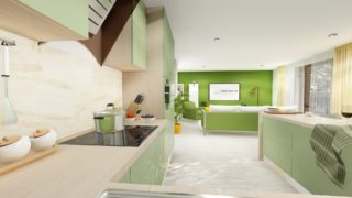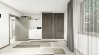 Krásny projekt bungalovu, vhodný na rovinatý alebo mierne svahovitý terén. Tento priestranný rodinný dom je vhodný pre väčšiu - päťčlennú alebo štvorčlennú rodinu s hosťovskou izbou. V dome nájdete aj kráľovstvo rodičov, kde spálňa rodičov je vybavená vlastným šatníkom a kúpeľňou. Priestrannú obývaciu časť tvorí aj americká kuchyňa, ktorá môže byť vybavená aj kuchynským ostrovčekom. Táto forma kuchyne je veľmi moderná a ponúka veľa kreatívnej slobody pri varení. Projekt domu je obohatený aj o veľké sklenené plochy v obývacej izbe, čo zaručuje krásne presvetlené priestory. Na priestrannej terase si užije oddych celá rodina. Rodinné domy s plochou strechou, príp. rovnou strechou sú jedinečným a zaujímavým riešením, ako získať nevšedný a moderný vzhľad domu. Projekt domu je dokonca vhodný aj na úzky pozemok. Tento projekt veľkého rodinného domu spája v sebe veľa výhod: má vzdušnú a priestrannú dennú časť, no všetci členovia majú aj svoj vlastný priestor pre oddych. Ďalšia kúpeľňa okrem tej hlavnej poteší každého člena rodiny. Samostatný šatník je snom azda každej ženy, kde sa pohodlne zmestí všetok oblečenie. Ďalšia toaleta poteší nielen návštevy. Technická miestnosť je praktickou súčasťou domu, nemusíte sa starať o to, kam umiestniť práčku, sušicku, kotoľ, príp. tepeľné čerpadlo. V prípade tohto domu si môžete zvoliť projekt domu ako aj stavbu domu na kľúč v dvoch prevedeniach: moderný dom, prípadne pasívny dom, ktorý môže byť až 3x úspornejší, ako klasický rodinný dom. Projekt tohto nízkoenergetického domu je dostupný aj v zrkadlovom prevedení, takisto sú možné menšie aj väčšie úpravy v projekte. V prípade stavby domu si môžete zvoliť alternatívy: holodom, hrubá stavba alebo rodinný dom na kľúč.