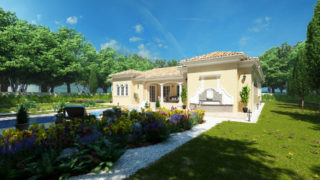 Krásny projekt bungalovu, vhodný na rovinatý alebo mierne svahovitý terén. Tento priestranný rodinný dom je vhodný pre väčšiu - päťčlennú alebo štvorčlennú rodinu s hosťovskou izbou. Projekt domu je obohatený aj o veľké sklenené plochy v obývacej izbe, čo zaručuje krásne presvetlené priestory. Na priestrannej terase si užije oddych celá rodina. Dom disponuje šikmou strechou, ktorá vytvára klasický a romantický vzhľad. Výhodou šikmých striech je variabilita a možnosť prispôsobenia ceľkového vzhľadu domu práve pomocou strechy. Rodinný dom je vybavený dvojgarážou, čím sa poskytne miesto nielen pre Vaše autá, ale môže slúžiť aj ako odkladací priestor pre rôzne náradia. Tento projekt veľkého rodinného domu spája v sebe veľa výhod: má vzdušnú a priestrannú dennú časť, no všetci členovia majú aj svoj vlastný priestor pre oddych. Ďalšia kúpeľňa okrem tej hlavnej poteší každého člena rodiny. Samostatný šatník je snom azda každej ženy, kde sa pohodlne zmestí všetok oblečenie. Ku kuchyni prislúcha aj špajza, ktorá je veľmi praktickým riešením na umiestnenie veľkého množstva jedla a kuchynského náradia. Ďalšia toaleta poteší nielen návštevy. Projekt domu aj stavba domu na kľúč je dostupná v dvoch prevedeniach: exkluzívny dom, kde sú použité nadštandarné materiály, alebo v prevedení luxusný dom z tých najkvalitnejších materiálov. Projekt tohto nízkoenergetického domu je dostupný aj v zrkadlovom prevedení, takisto sú možné menšie aj väčšie úpravy v projekte. V prípade stavby domu si môžete zvoliť alternatívy: holodom, hrubá stavba alebo rodinný dom na kľúč.